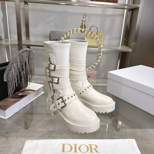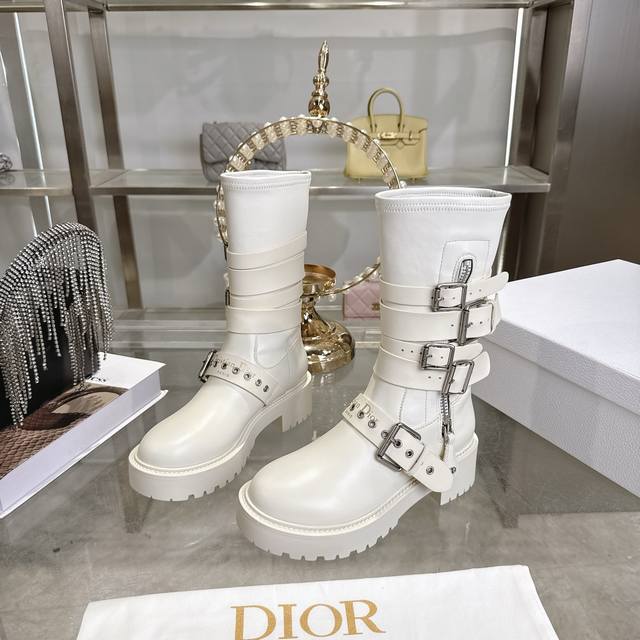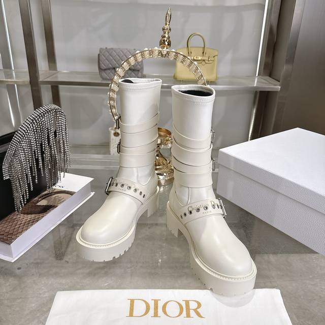 / 出厂 代购级 Dior 迪奥 25新款 中靴 高筒靴 布洛克长靴 25早春成衣系列新品,彰显高订魅力。黑色橡胶效果牛皮革筒形设计,侧面饰以银色拉链饰面提升格调。