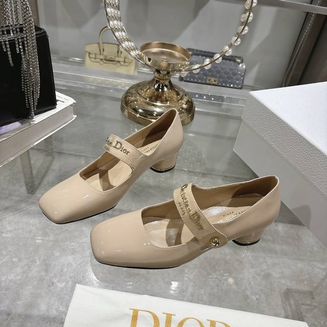出厂 25Ss早春新款Dior迪奥D-My 五金字母方头高跟鞋 这款My Dior 高跟鞋是二零二五春夏成衣系列新品 彰显精致的优雅气质 采用牛皮革精心制作 点缀以金色饰扣装饰金属Christian Dior paris标志 富有辨识度 彰显Dior 非凡的精湛工艺 图形风格鞋跟相得益彰 令时尚的设计更显典雅