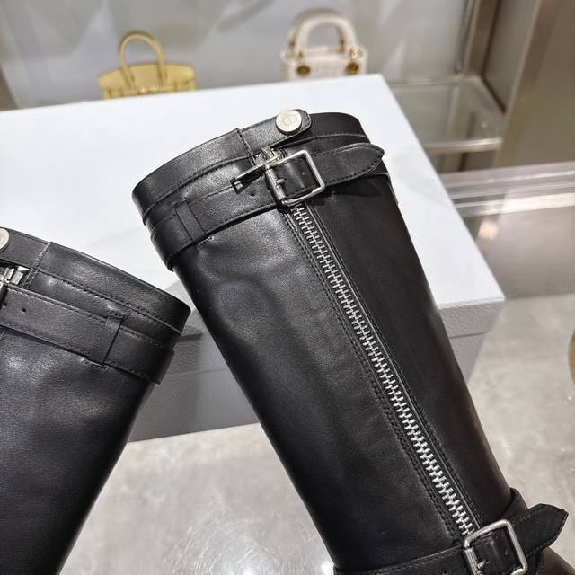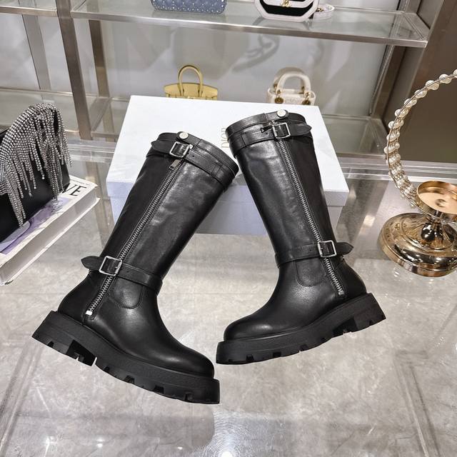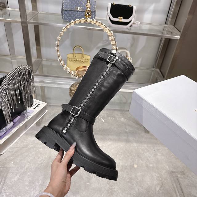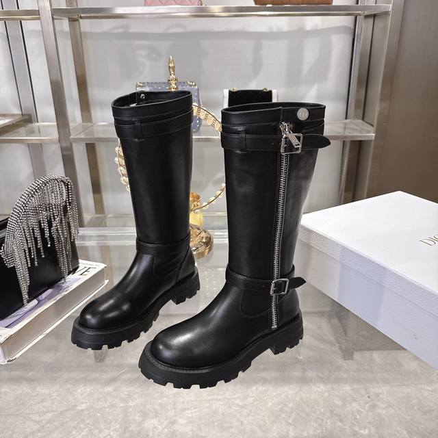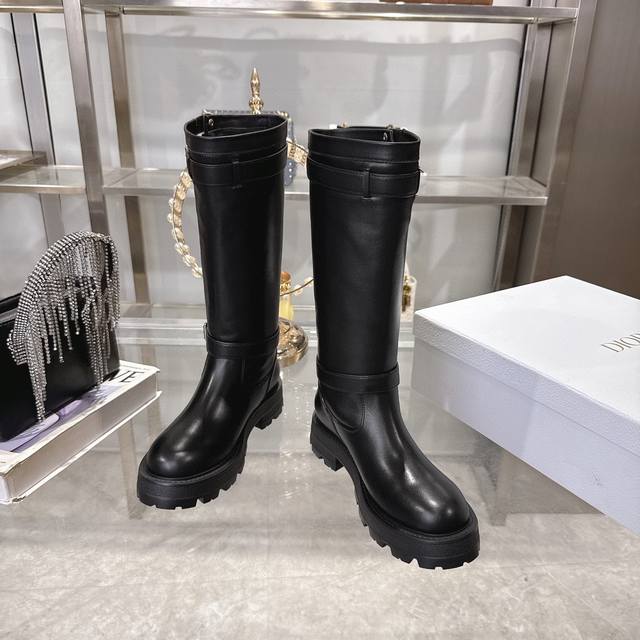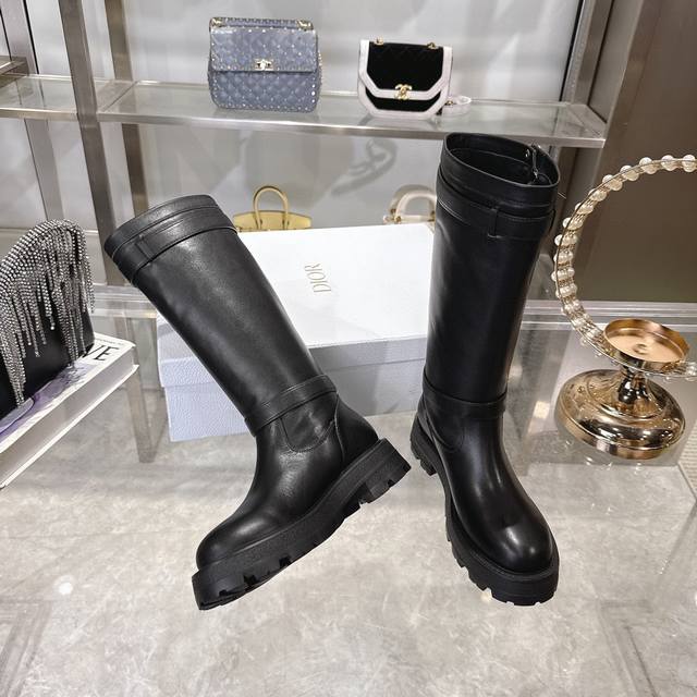 Di0R 迪奥2025秋冬新款靴 高版本 Dior 标志字母靴子 彰显经典设计。经久不衰的马靴造型,采用柔软的黑色牛皮革制作,打造休闲又不失优雅的风格。经典百搭 采用顶级进口小牛皮,整个靴筒都是全皮