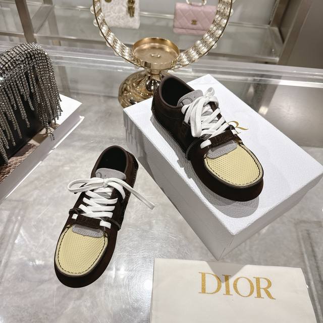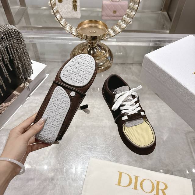 出厂 Dior迪奥2025新款 老花帆布鞋 休闲运动鞋 多样配色从薰衣草紫色的实验色块到焦糖棕复古工装 再到纯米色极简自然 宽大鞋带 原始缝线 鞋底采用复古简形编织图案 并到生产 上脚非常舒适 可为各式休闲造型增添时髦气质 Size: 女款34-41 34,41订做不退换