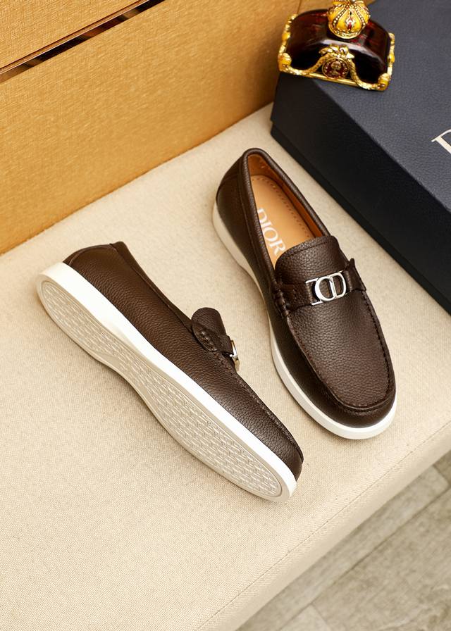 商品商标:Dior 迪奥 休闲皮鞋 正码码数: 39-44 38.45.46订做 商品材料:精选 意大利进口头层荔枝小牛皮鞋面+经典五金扣,进口水染牛皮内里。强烈立体视觉效果,橡胶大底 颜 色:1色可选
