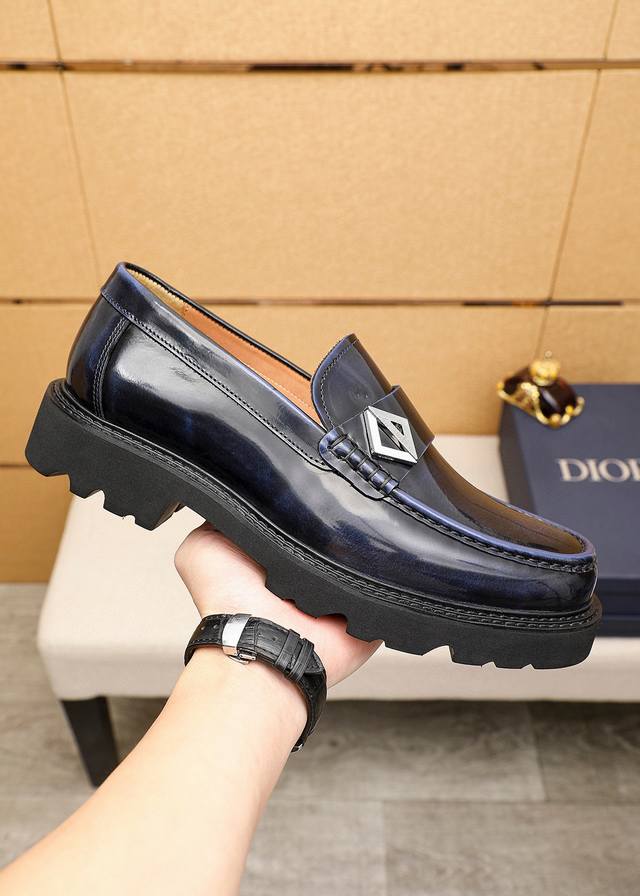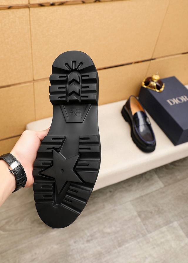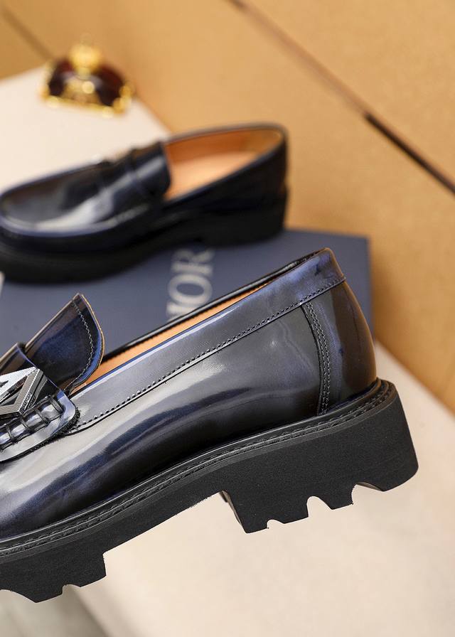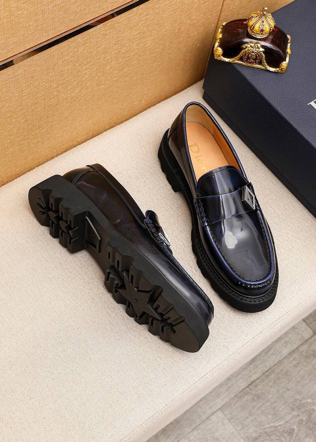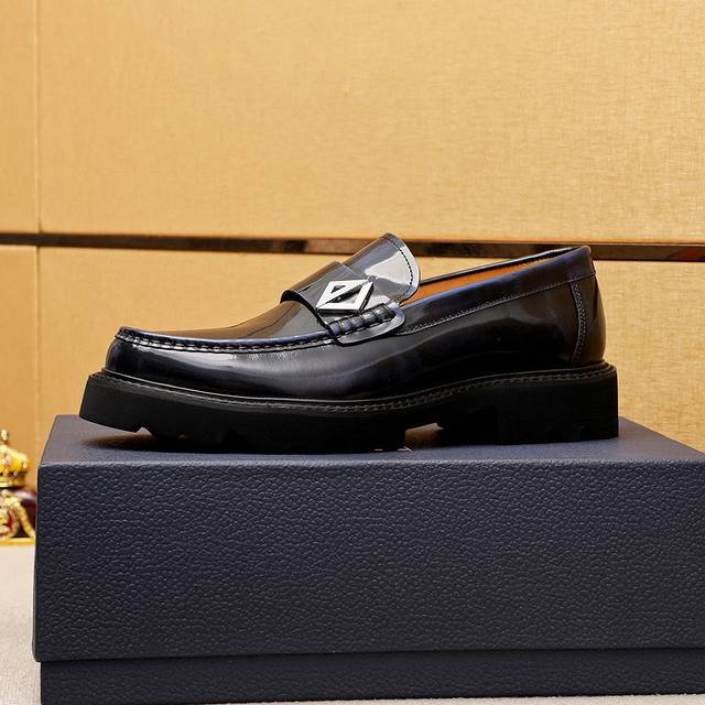 工厂价 迪奥.Cd男士 官网.厚底乐福鞋皮鞋 采用进口黑色牛皮 开边珠亮皮打造手工缝制鞋面 内里黑色小牛皮内里...