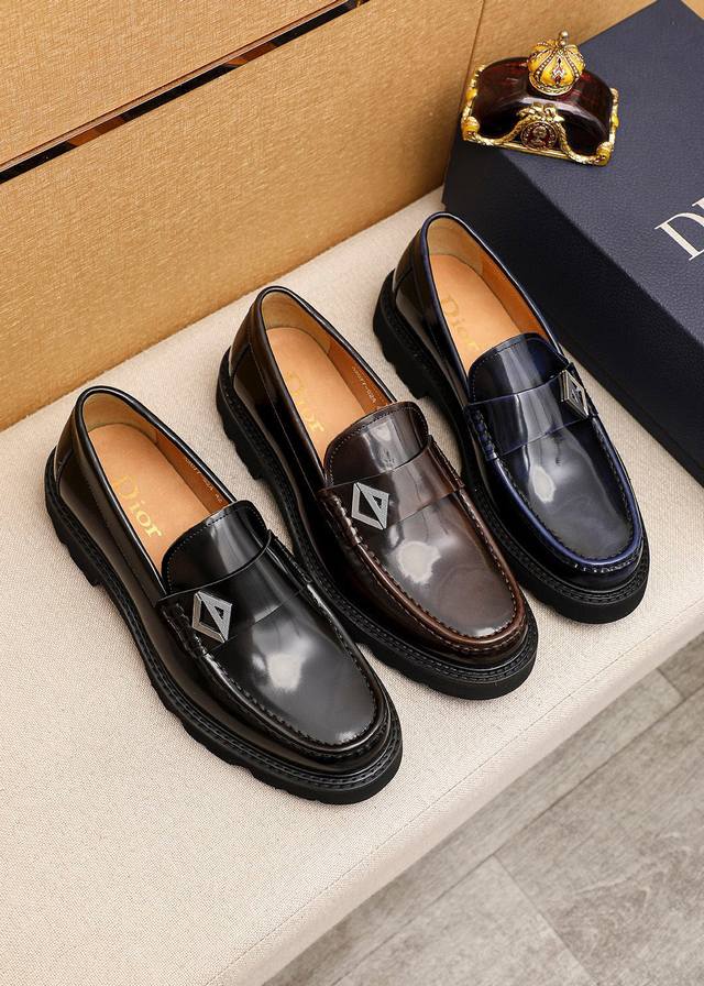 商品商标:Dior 迪奥 休闲皮鞋 正码码数: 39-44 45订做 商品材料:精选 意大利进口头层开边珠牛皮鞋面+经典五金扣,进口水染牛皮内里。强烈立体视觉效果,原版大底 颜 色:3色可选