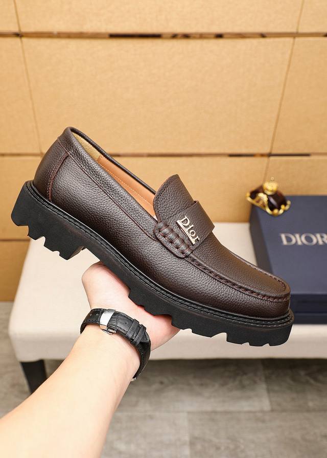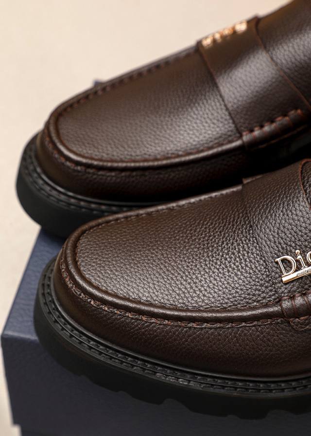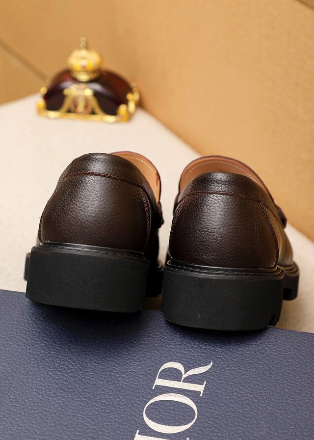 / 商品商标:Dior 迪奥 休闲皮鞋 正码码数: 39-44 45订做 商品材料:精选 意大利进口头层荔枝纹牛皮鞋面+经典五金扣,进口水染牛皮内里。强烈立体视觉效
