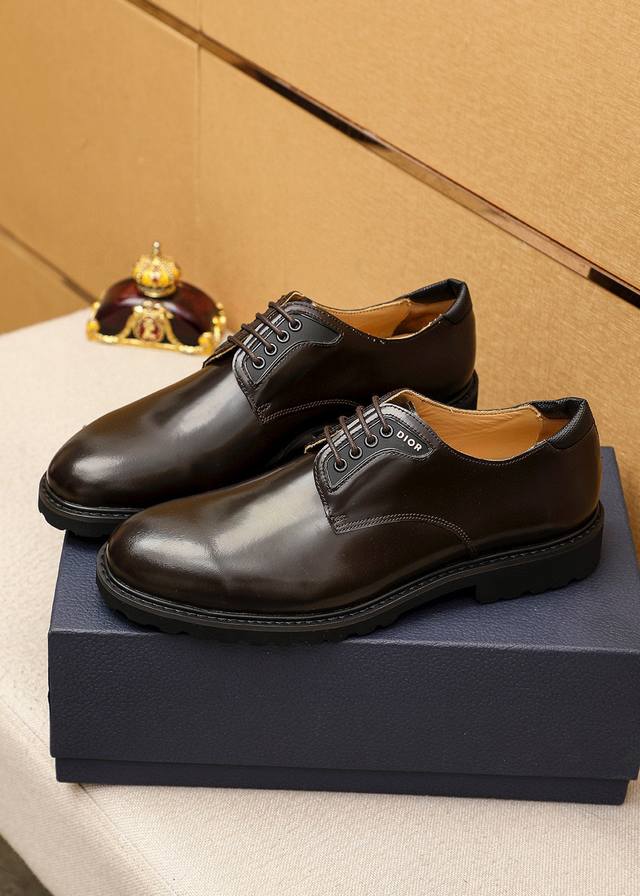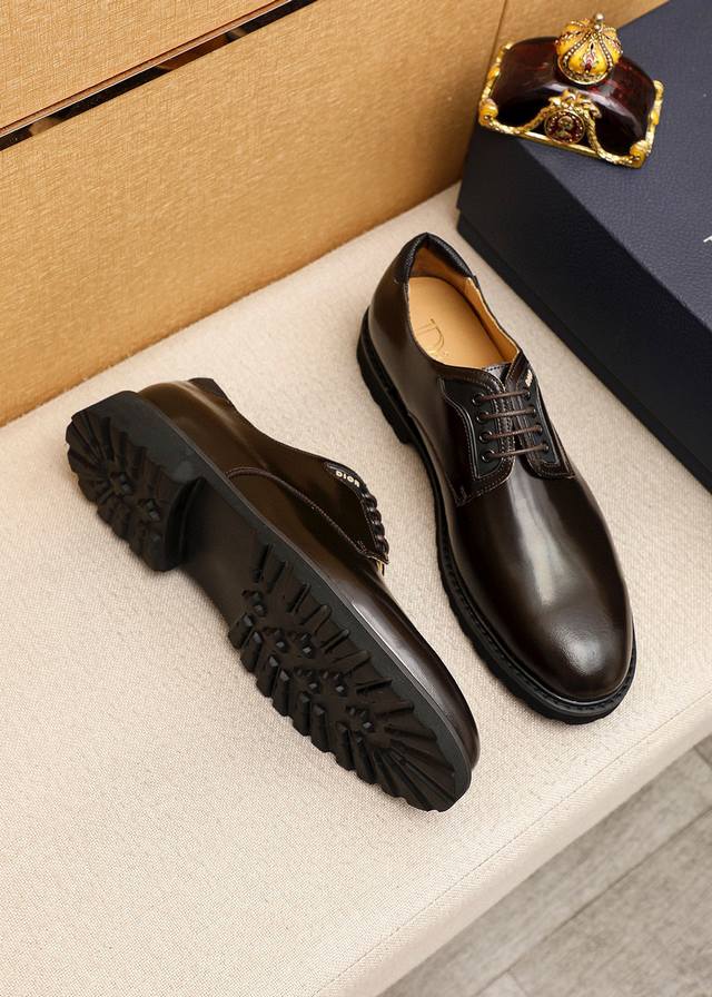 / 商品商标:Dior 迪奥 商务皮鞋 正码码数: 39-44 38.45.46订做 商品材料:精选 意大利进口头层开边珠牛皮鞋面,进口水染牛皮内里。强烈立体视觉效