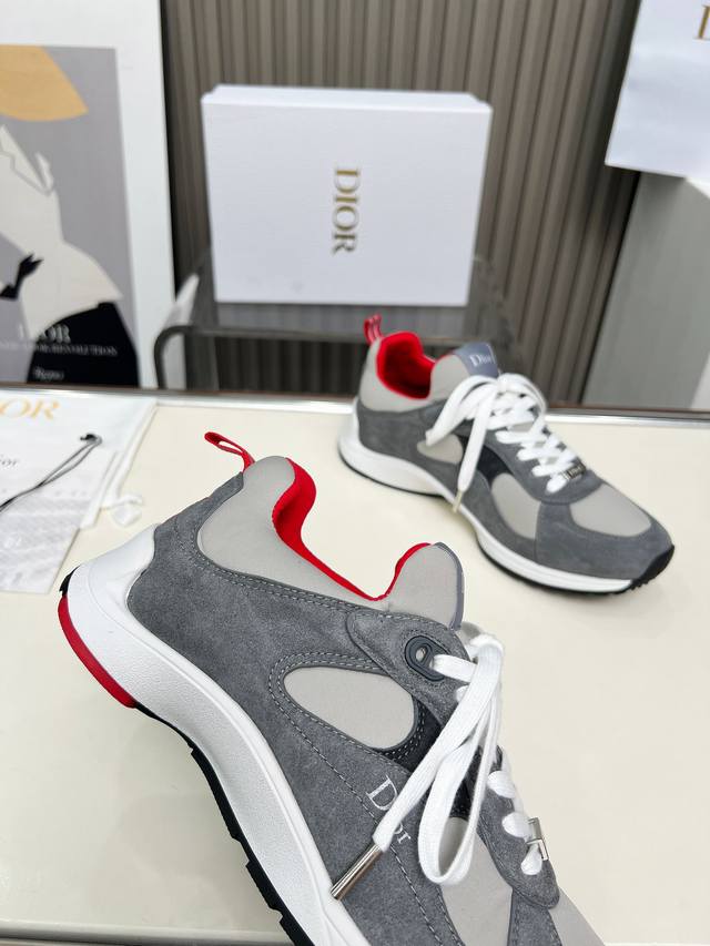 实价 Dior迪奥最新款Star系列老爹鞋 这款运动鞋是2025秋季新品,以时髦复古风格丰富经典系列。精心制作,可全年与休闲造型搭配顺应复古市场的趋势的 Dad Shoes风格鞋款鞋,采用超柔软牛反绒面和莱卡网眼布面材质拼接成鞋身,内里采用鲜艳配色的高弹力材料,脚感包裹又舒适。鞋带装饰高级质感的五金Logo铭牌,鞋身多处线条勾勒细节立体感十足,为休闲造型增添时尚气质!