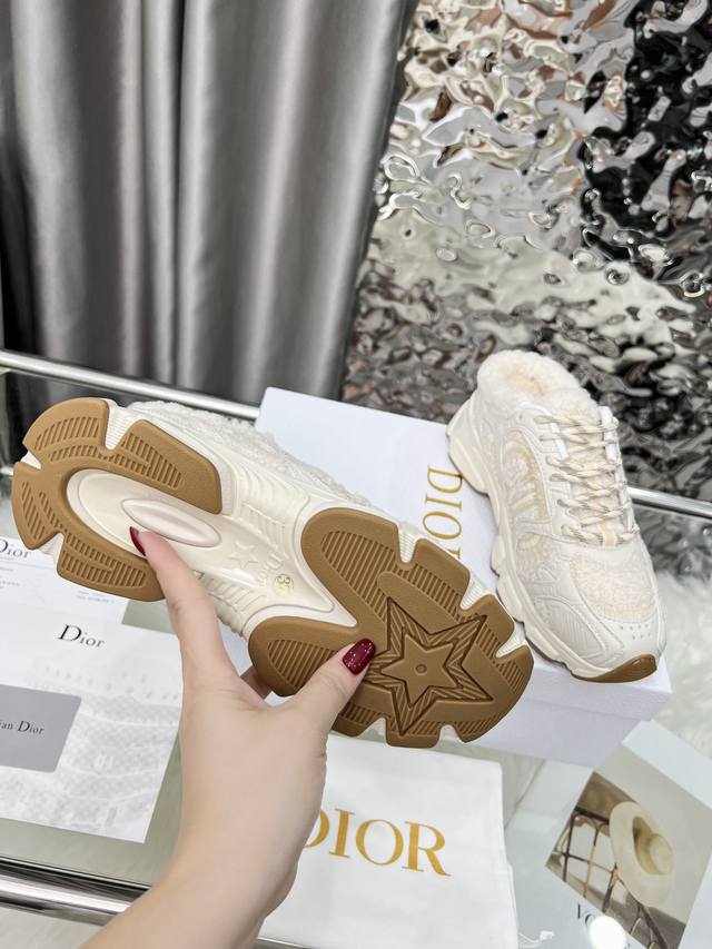 工厂P价 女装女鞋 运动原单这款 Dior Chrono 运动鞋以Dior的高订风格重新演绎跑步鞋。米色毛圈效果科技面料搭配皮革效果镶片,饰以经典细节彰显格调,包括侧面的Cd标志刺绣、鞋舌上的星星补丁和后侧的 Dior标志。采用双色鞋带,轻盈鞋底搭配星星图案,可全年打造休闲造型。 价格P:P 内里:羊毛里 码数:女码35-41 35 42可定做 颜色: