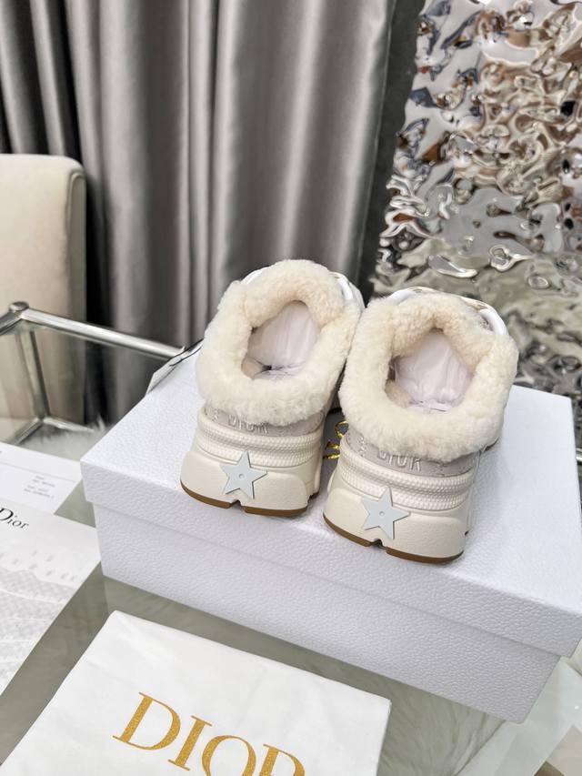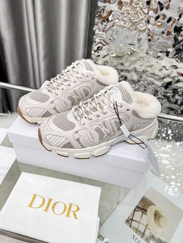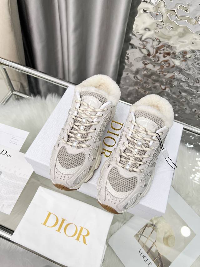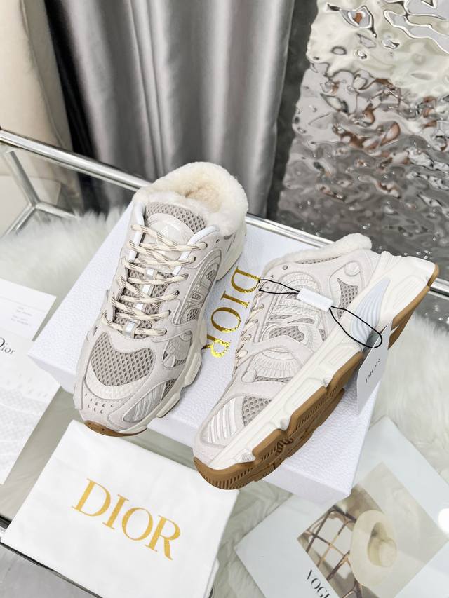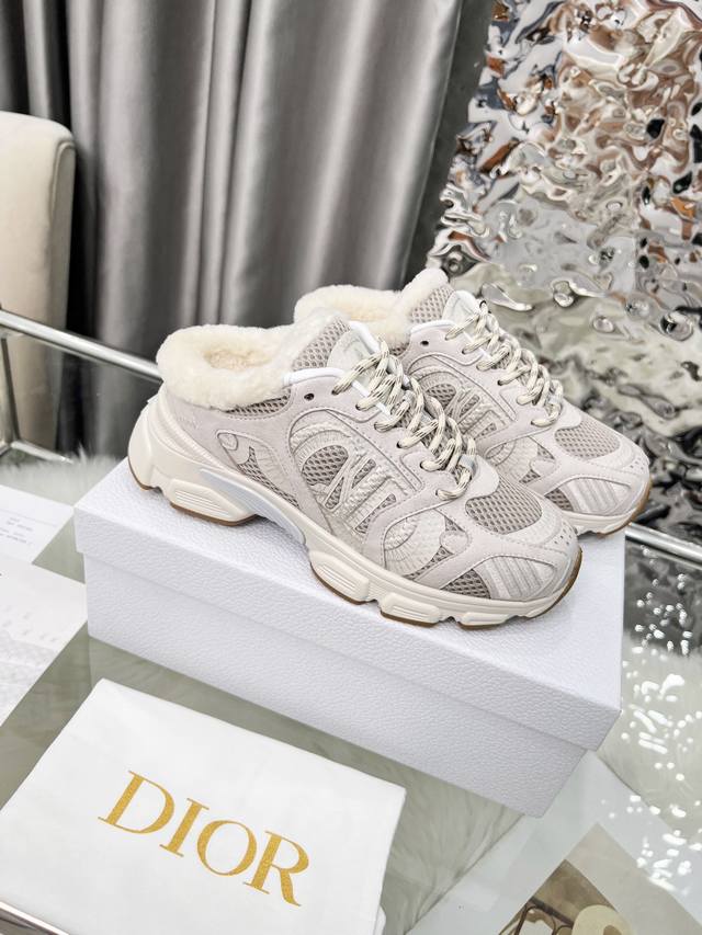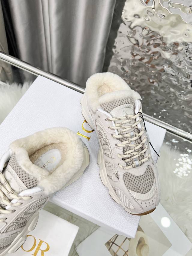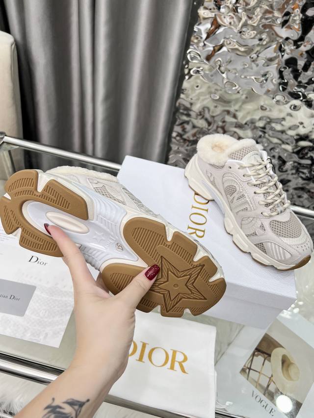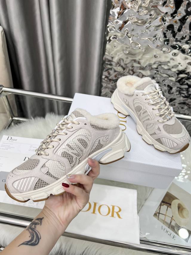 工厂P价 女装女鞋 运动原单这款 Dior Chrono 运动鞋以Dior的高订风格重新演绎跑步鞋。米色网眼织物搭配同色调绒面牛皮革镶片,侧面的Cd 标志、鞋舌上的星星补丁和鞋跟的Dior标志,诸多经典细节彰显格调。采用双色鞋带,轻盈鞋底搭配星星图案,冬季时尚百搭 价格P:P 内里:羊毛里 码数:女码35-41 35 42可定做 颜色: