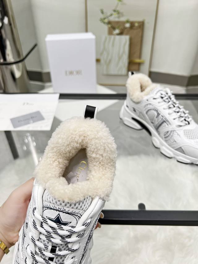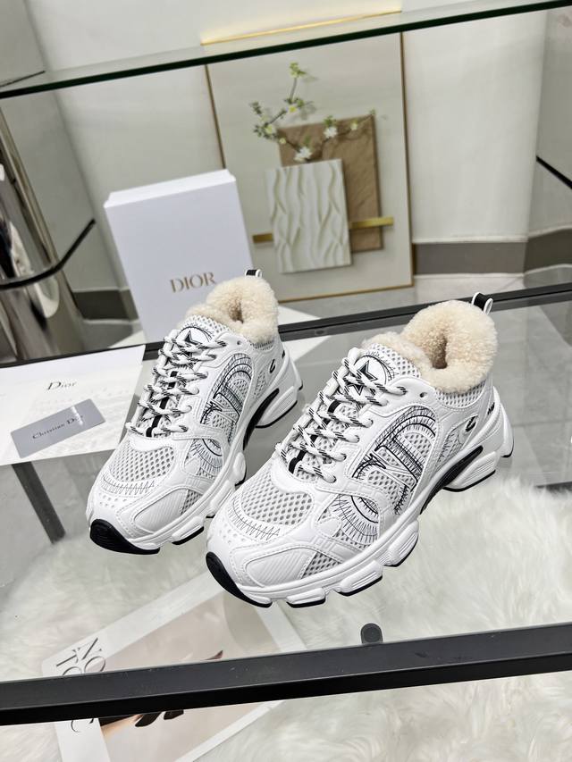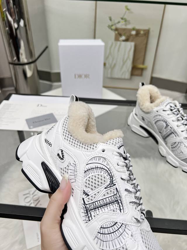 工厂P价 女装女鞋 运动原单这款 Dior Chrono 运动鞋是二零二四秋季成衣系列新品,以 Dior 的高订风格重新演绎跑步鞋。白色和黑色网眼织物搭配皮革效果镶片,两侧的 Cd 标志、鞋舌上的星星补丁和鞋跟的 Dior 标志,诸多细节彰显格调。采用双色鞋带,轻盈鞋底搭配星星装饰,冬季时尚百搭款 价格P:P 内里:羊毛里 码数:女码35-41 35 42可定做 颜色:全色系