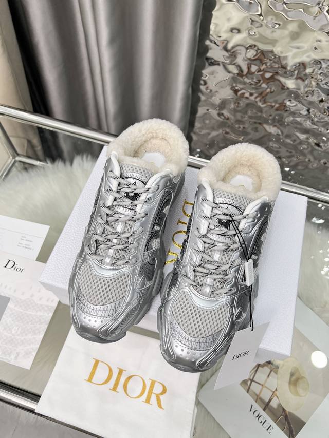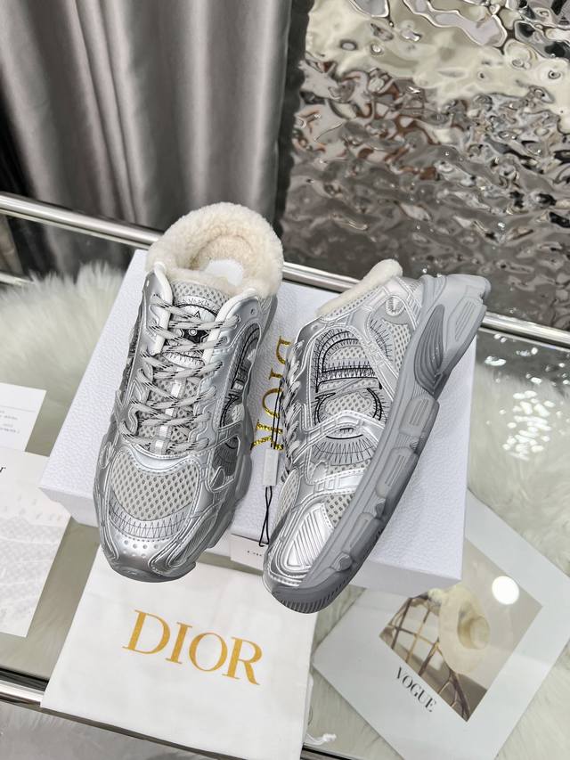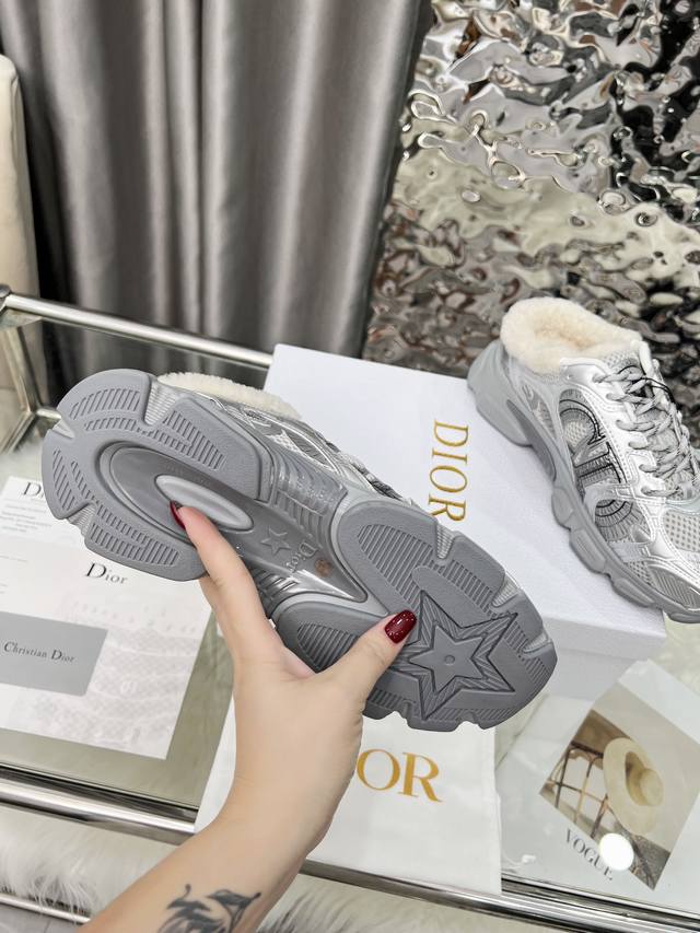 工厂P价 女装女鞋 运动原单这款 Dior Chrono 运动鞋是二零二四秋季成衣系列新品,以 Dior 的高订风格重新演绎跑步鞋。银色和灰色网眼织物搭配皮革效果镶片,两侧的 Cd 标志、鞋舌上的星星补丁和鞋跟的 Dior 标志,诸多细节彰显格调。采用双色鞋带,轻盈鞋底搭配星星装饰,冬季时尚百搭款 价格P:P 内里:羊毛里 码数:女码35-41 35 42可定做 颜色: