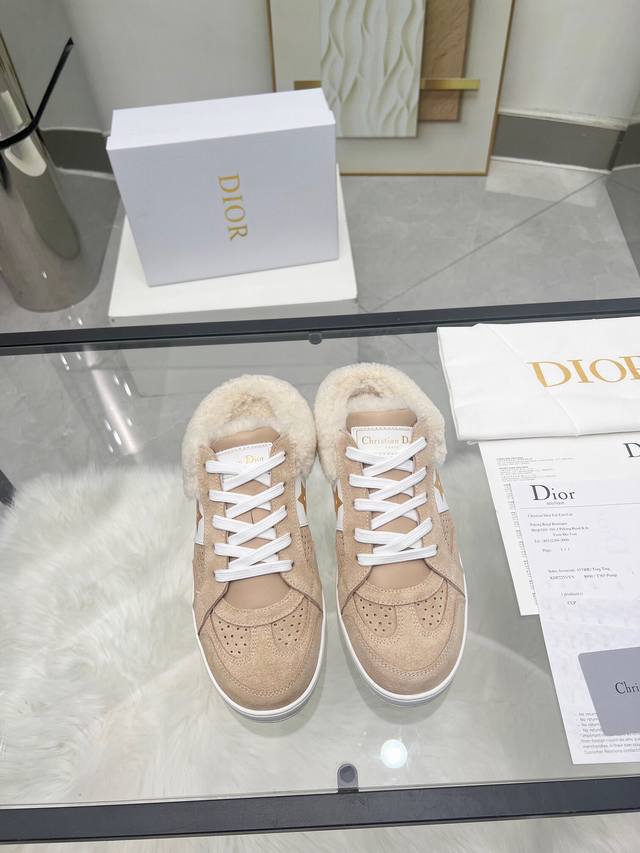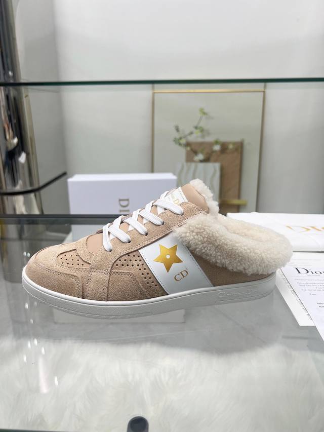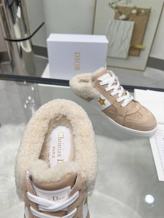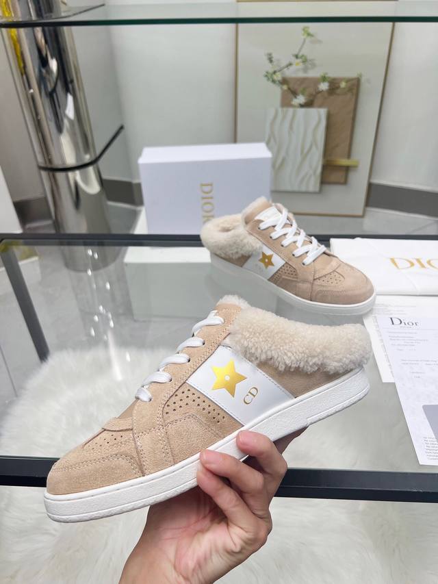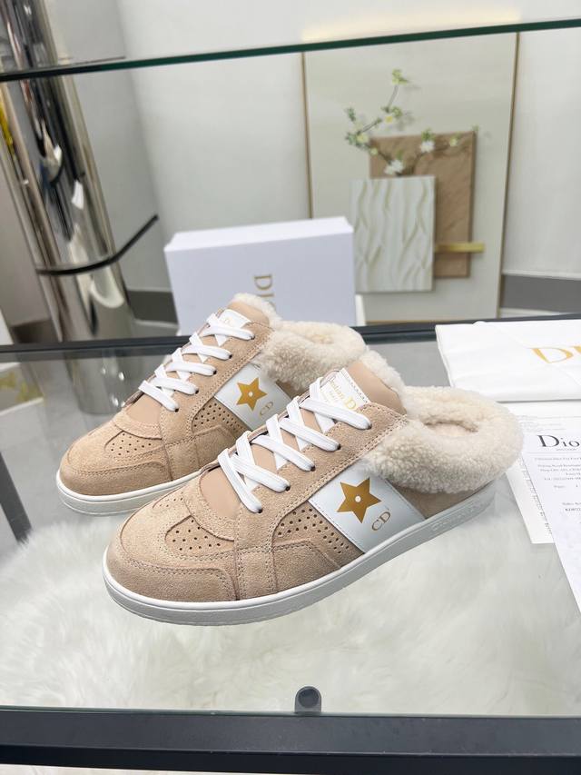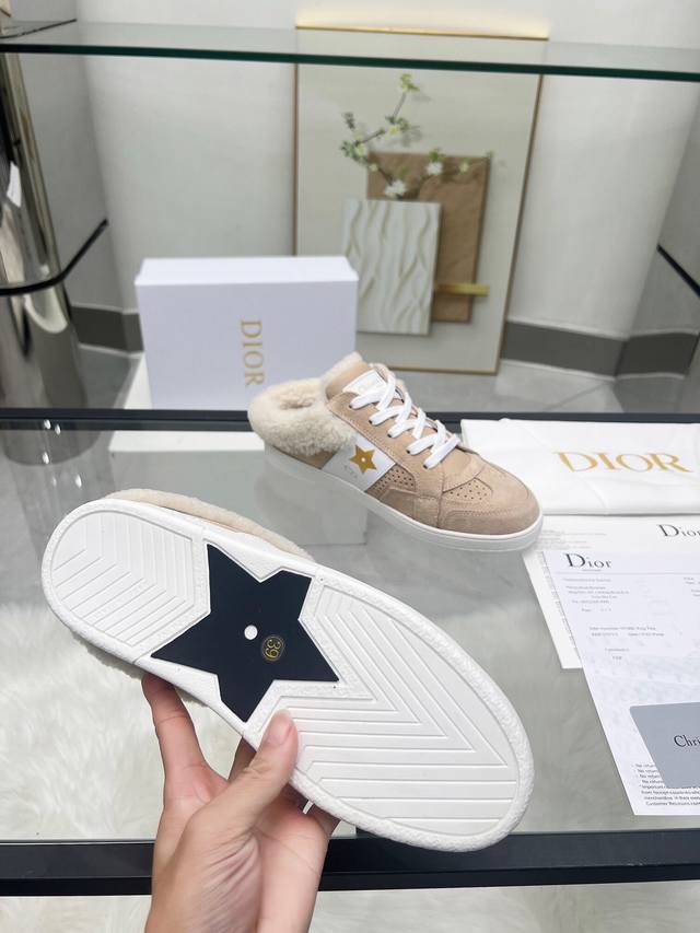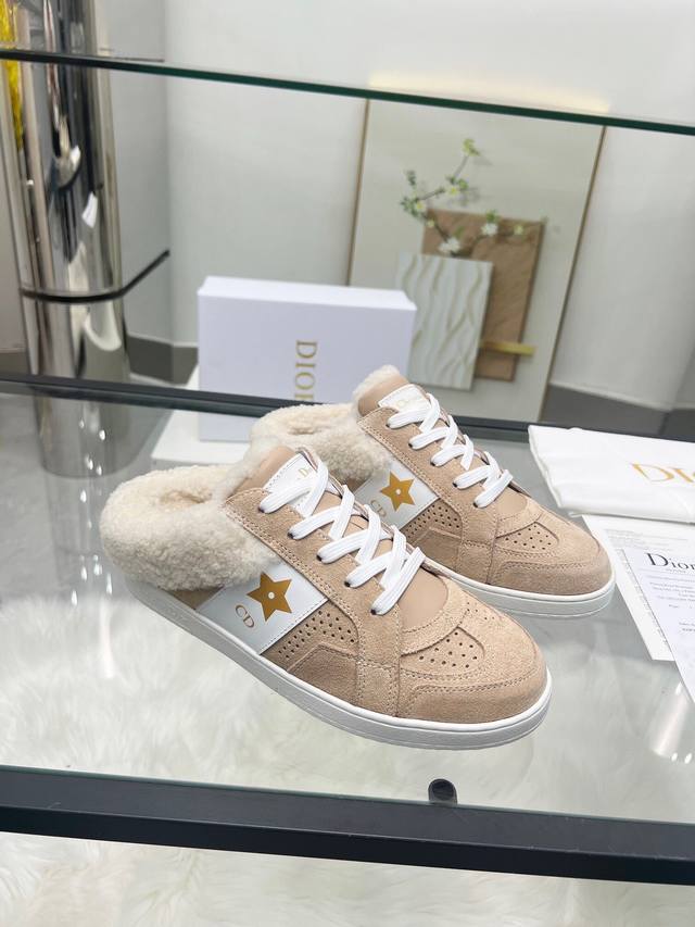 / 工厂P价 女装女鞋 运动原单这款 Dior Star运动鞋是一款时尚单品,进一步丰富该系列。露跟式设计,搭配白色羊皮革效果里料,突显与众不同的风格。高丝光米色绒