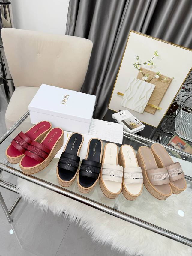 工厂p价 女装女鞋 运动原单 Dior迪奥Dway 一字拖厚底坡跟凉鞋这款厚底凉拖时尚休闲,富有辨识度。 灵感由D主设计师巧妙结合在完美鞋型上.搭配品牌搭扣,更