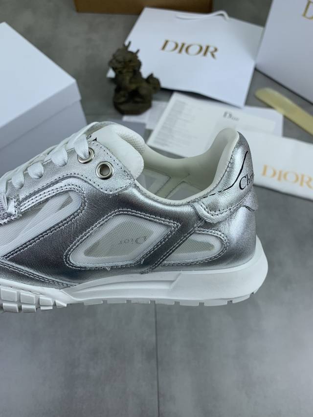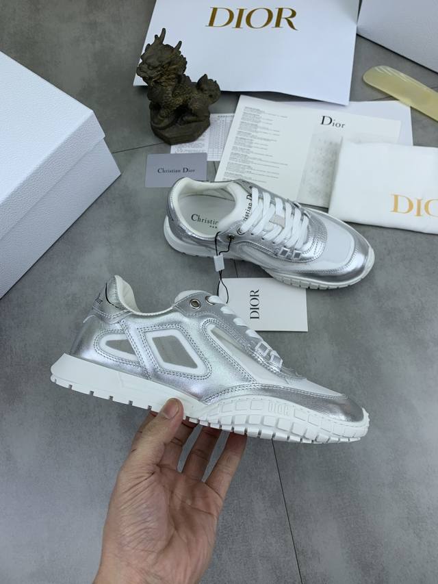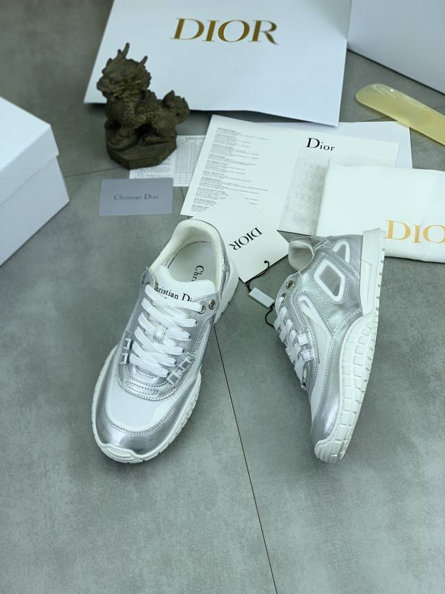 工厂p价p 实价 迪奥Dior Tech运动鞋 Ddd 2026早春系列新品,搭配时尚细节,彰显复古美学。浅米色反绒牛皮革鞋面与杏色透明网眼织物侧面拼接,鞋面窗口引边采用高周波平烫反压贴合,复刻原版工艺,美观舒适不脱落。内里采用同色调羊里全包柔软舒适,后跟和鞋舌点缀以paris标志,富有纹理的Tpu同色调标志鞋底,高版本精美全套包装配飞机盒 增添高订风范。 颜色:4色可选 Ddd 码数:女35-41 男39-46 DDD