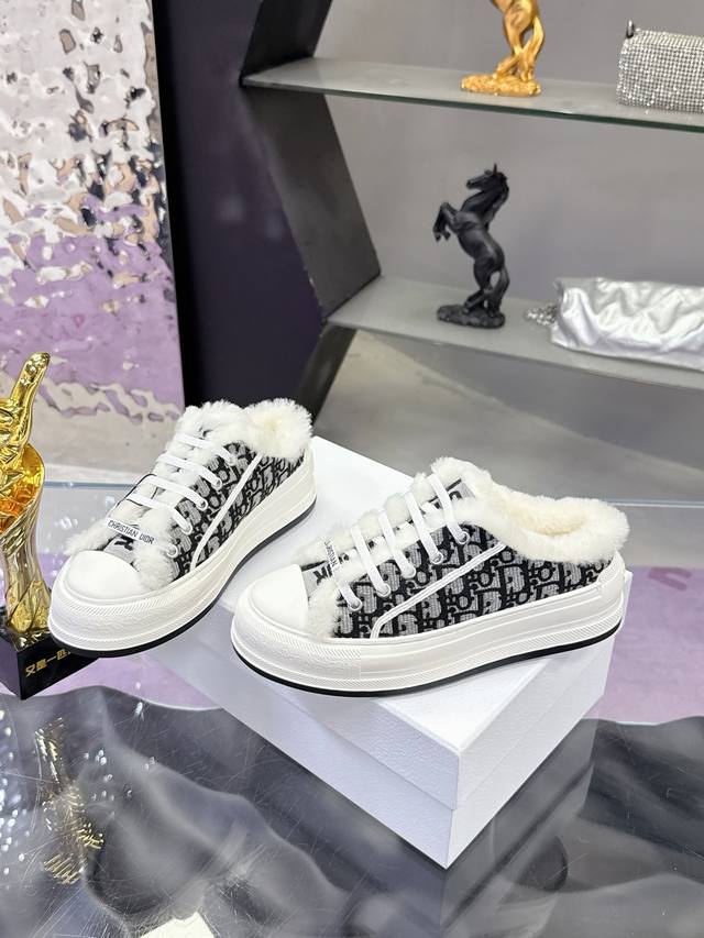 工厂p价p: DDD ' 迪奥老花刺绣 DDD 采用羊毛厚底半拖系列 DDD 帆布鞋 休闲运动鞋 这款 Walk'n'dior 厚底运动鞋是一款时尚单品,提升该系列的格调。Oblique 印花棉质刺绣鞋面,搭配舒适厚底、鞋舌和 Christian Dior paris 标志鞋带 DDD 底厚4.5Cm DDD Size: 女款35一41 42定制 DDD