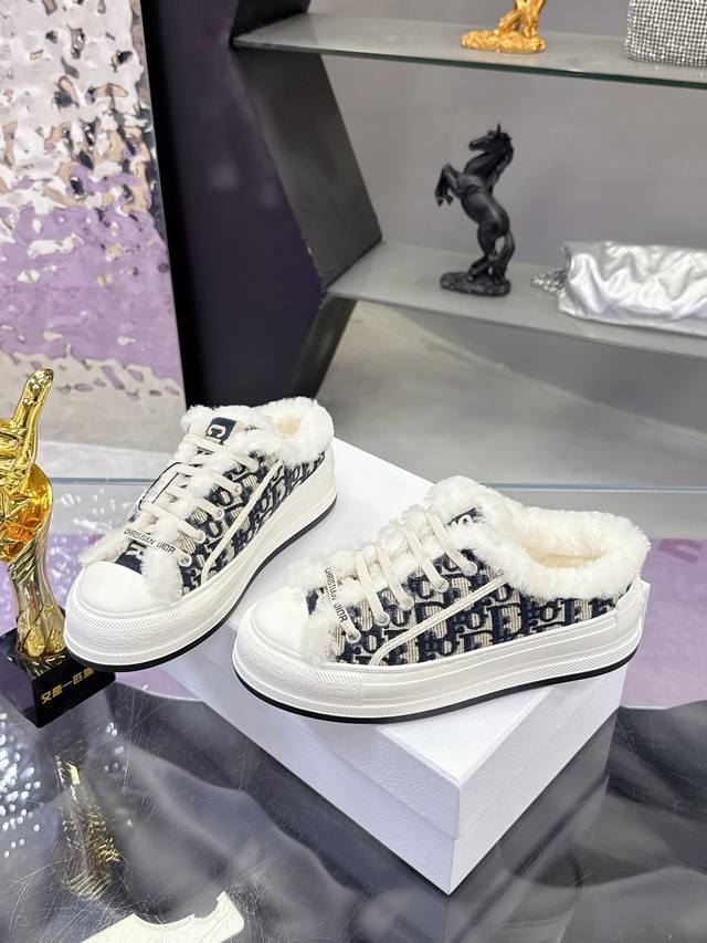 工厂p价p: DDD ' 迪奥老花刺绣 DDD 采用羊毛厚底半拖系列 DDD 帆布鞋 休闲运动鞋 这款 Walk'n'dior 厚底运动鞋是一款时尚单品,提升该系列的格调。Oblique 印花棉质刺绣鞋面,搭配舒适厚底、鞋舌和 Christian Dior paris 标志鞋带 DDD 底厚4.5Cm DDD Size: 女款35一41 42定制 DDD
