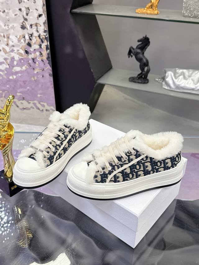 工厂p价p: DDD ' 迪奥老花刺绣 DDD 采用羊毛厚底 DDD 帆布鞋 休闲运动鞋 这款 Walk'n'dior 厚底运动鞋是一款时尚单品,提升该系列的格调。Oblique 印花棉质刺绣鞋面,搭配舒适厚底、鞋舌和 Christian Dior paris 标志鞋带 DDD 底厚4.5Cm DDD Size: 女款35一41 42定制 DDD