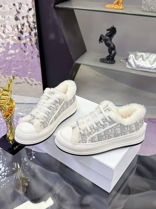 工厂p价p: DDD ' 迪奥老花刺绣 DDD 采用羊毛厚底 DDD 帆布鞋 休闲运动鞋 这款 Walk'n'dior 厚底运动鞋是一款时尚单品,提升该系列的格调。Oblique 印花棉质刺绣鞋面,搭配舒适厚底、鞋舌和 Christian Dior paris 标志鞋带 DDD 底厚4.5Cm DDD Size: 女款35一41 42定制 DDD