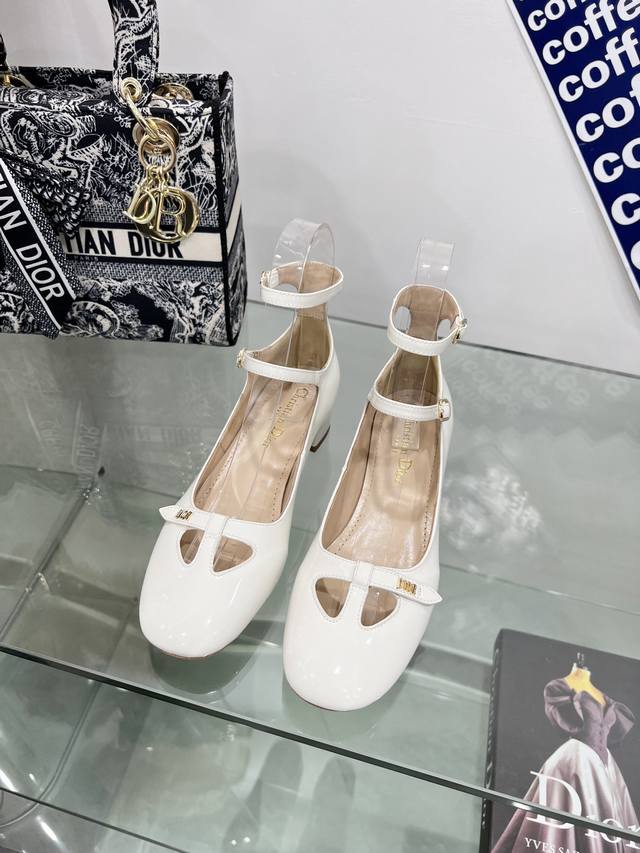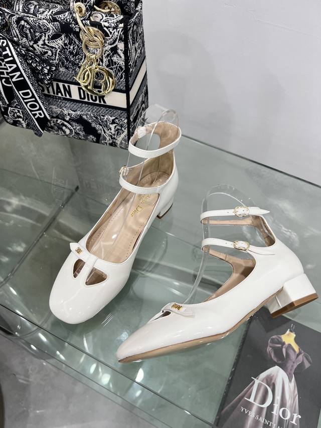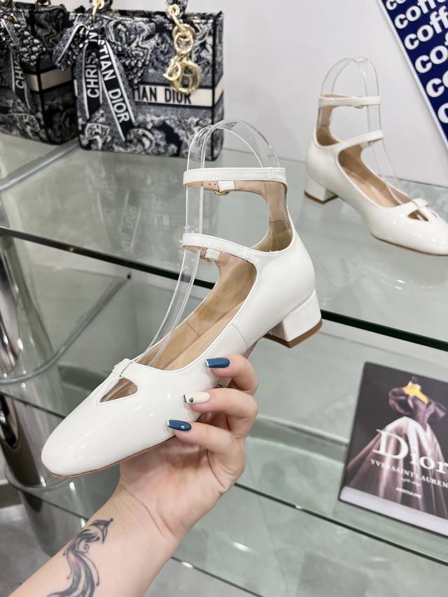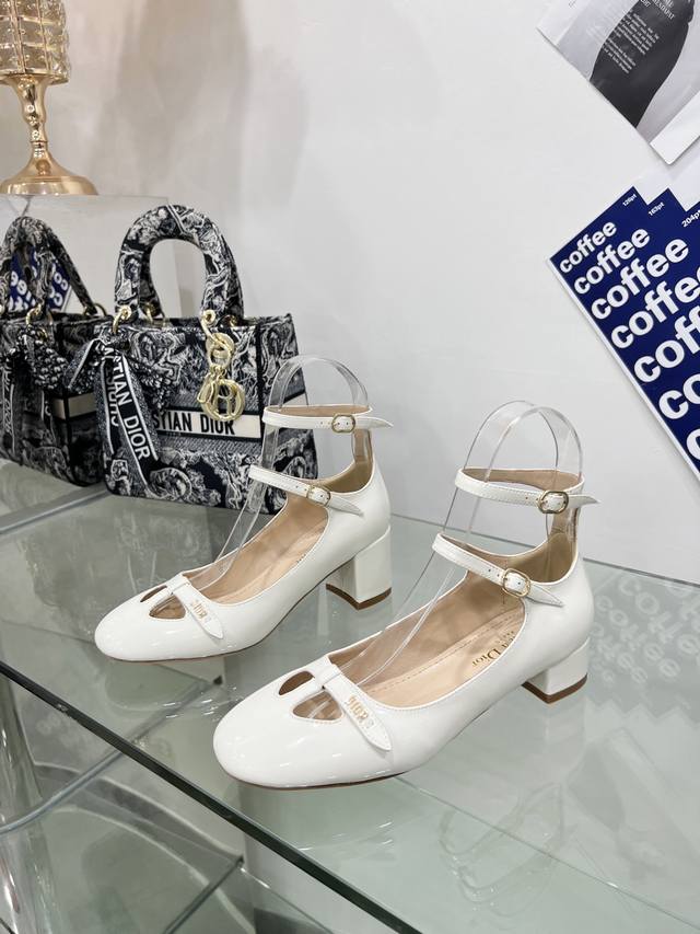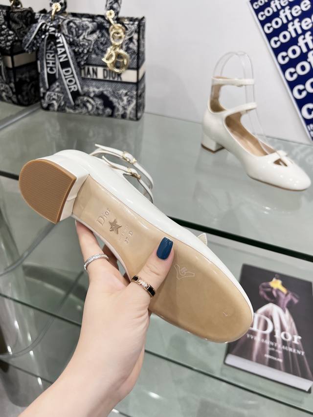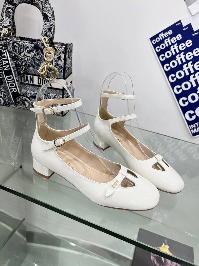 工厂P价P 迪奥 夏季新款法式复古时尚镂空双搭扣粗跟玛丽珍鞋女 Cd字母Logo五金扣方头复古女单鞋 市面顶级高端版本 材质:鞋面进口漆皮 水染羊皮内里+意大利真皮大底 跟高:3.5 6.5 颜色 大红 黑 杏 米白 官网四色 Size:34-43 34 40 41 42 43定制不退换