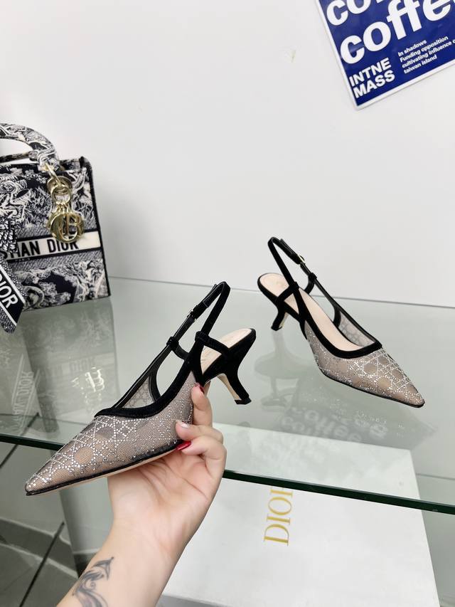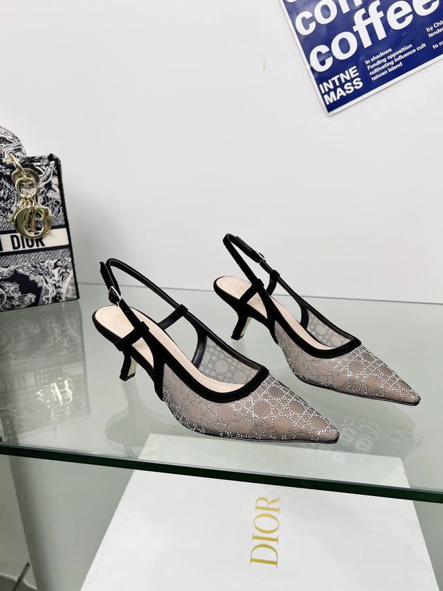 / 工厂p价p Dior 迪奥 2025春夏走秀新款Bling...Bling...水晶鞋 Capture一字带高跟穆勒女鞋 明星同款水钻方头藤格纹图案猫跟拖鞋 市