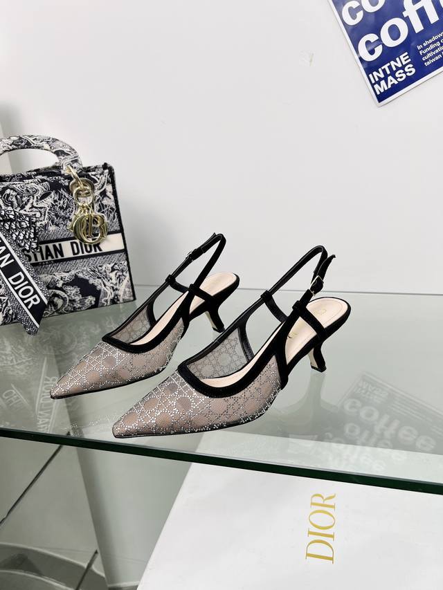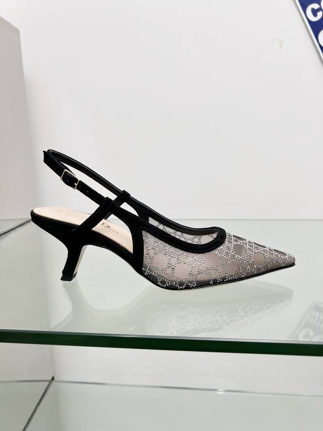 工厂p价p Dior 迪奥 2025春夏走秀新款Bling...Bling...水晶鞋 Capture一字带高跟穆勒女鞋 明星同款水钻方头藤格纹图案猫跟拖鞋 市