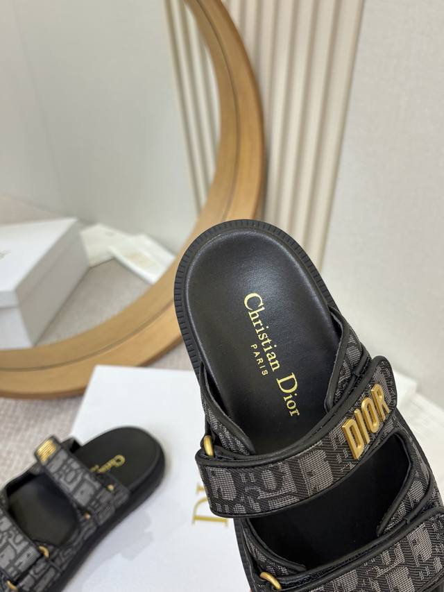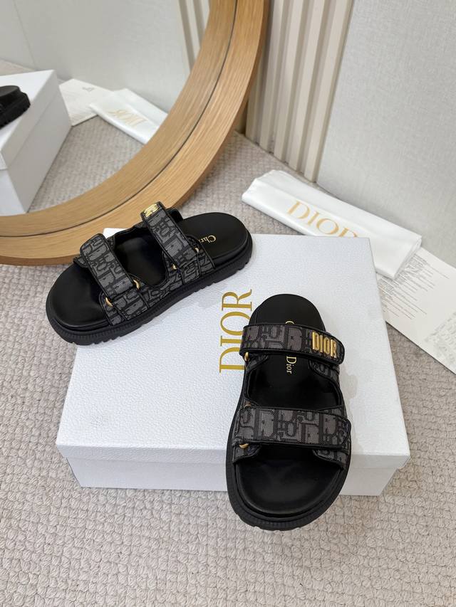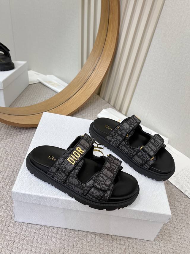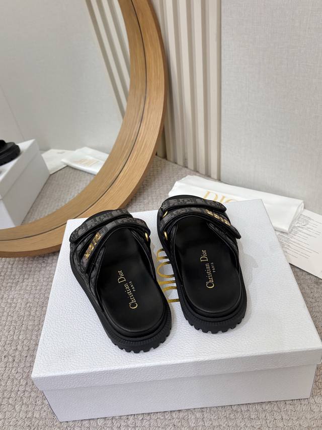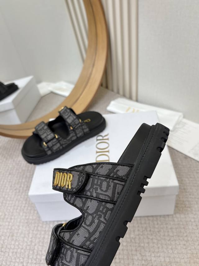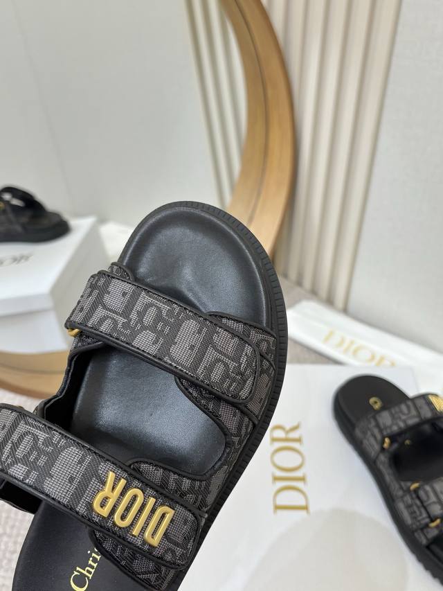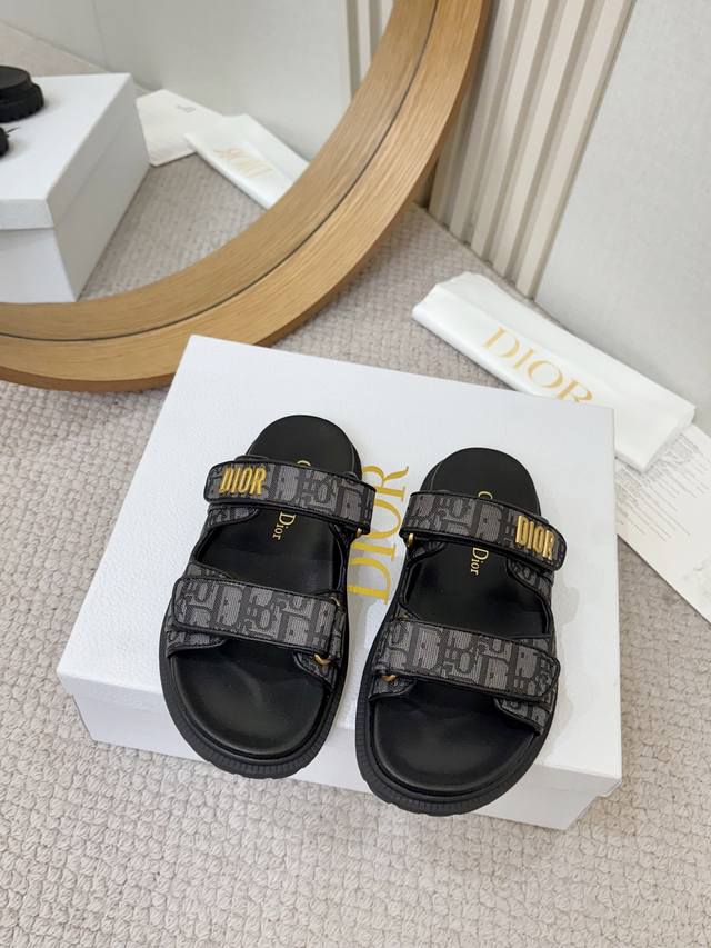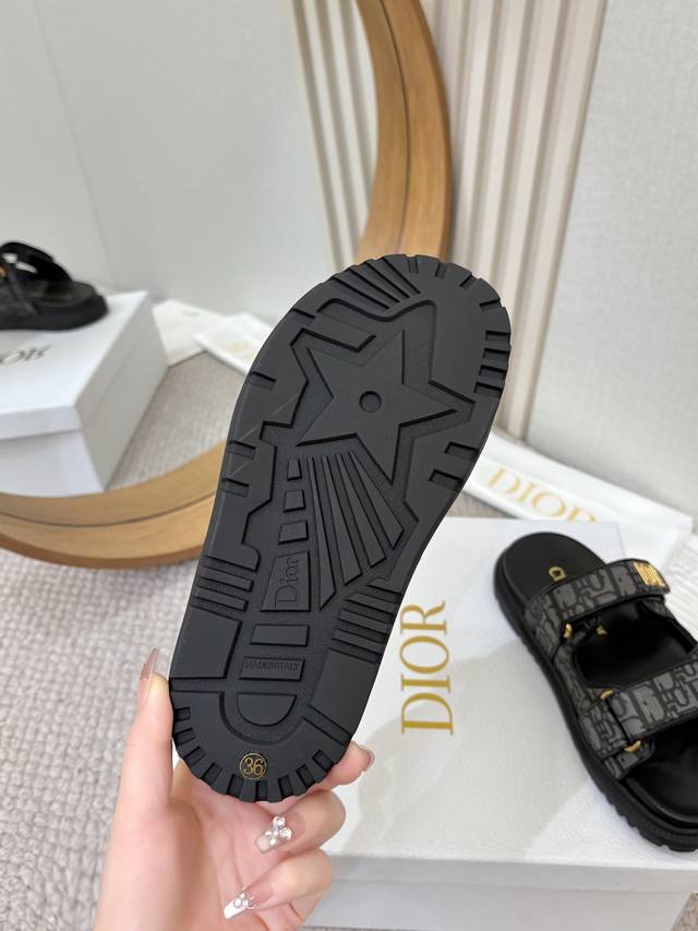 / 工厂p批p Dior经典款凉鞋 这款混种羊皮 Dioract 凉鞋款式时尚。搭配贴合脚型的内底,采用格外轻盈、舒适的皮革制作。鞋面饰带采用魔术贴开合,搭配金色
