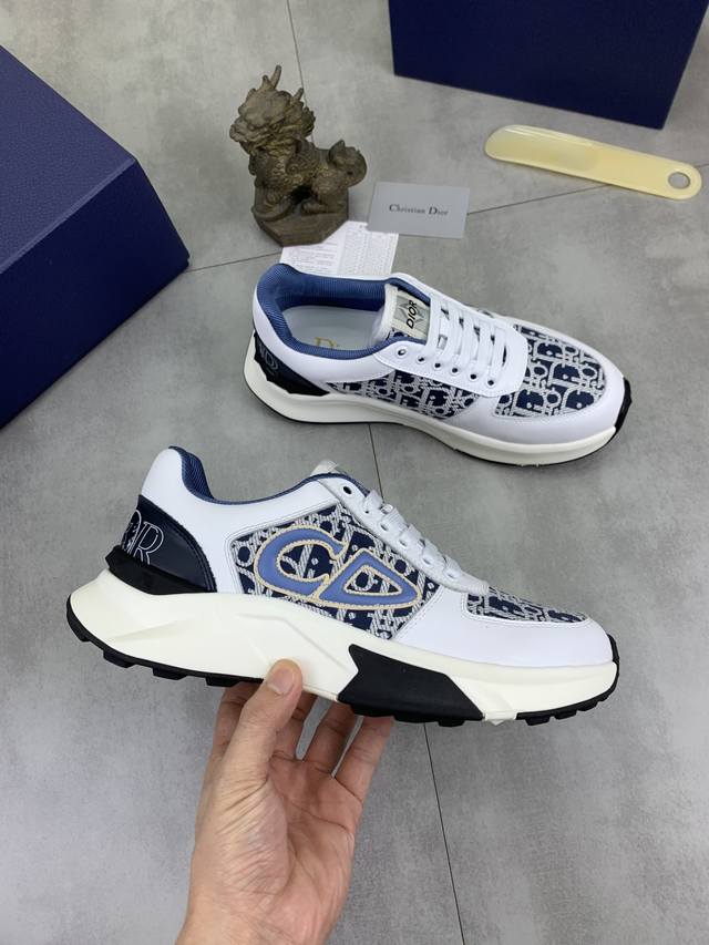 新配色Dior迪奥男士运动鞋 Size; 39~44 38.45.46定制 牛皮立 磨砂皮 刺绣...