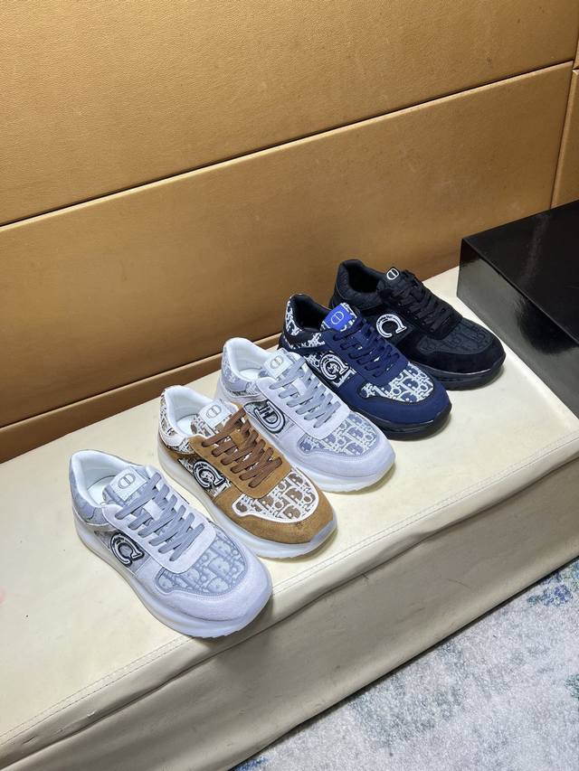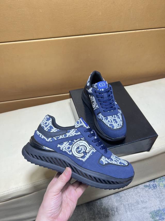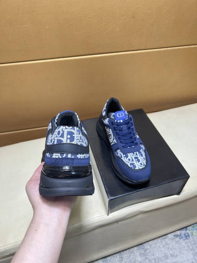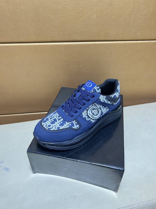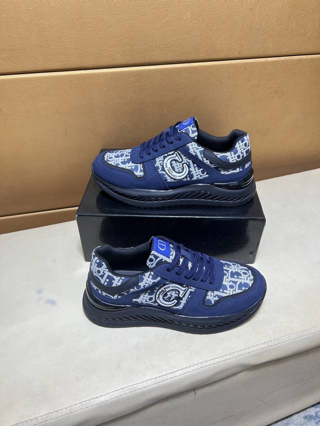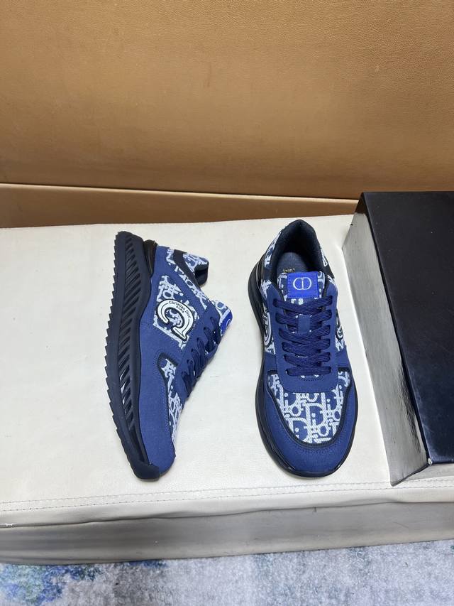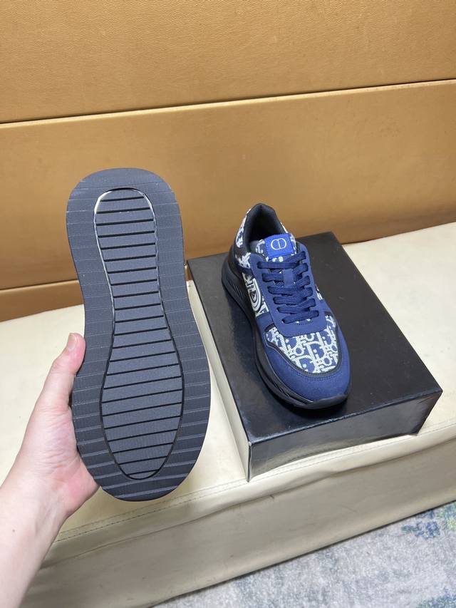 迪奥 原单品质.~ 独特现代风运动鞋。休闲鞋潮男必备款 意大利进口原版品牌,进口原版皮,羊里 拒绝脱色磨脚 鞋底:原厂特供原版底,法国懒人风格设计 贴脚 在贴原