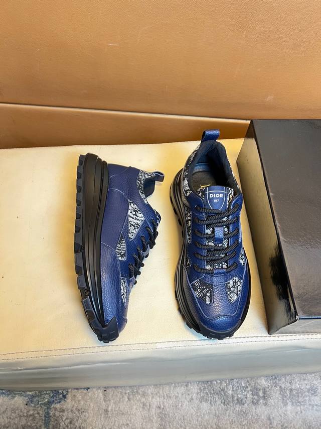 / 迪奥 原单品质.~ 独特现代风运动鞋。休闲鞋潮男必备款 意大利进口原版品牌,进口原版皮,羊里 拒绝脱色磨脚 鞋底 原厂特供原版底,法国懒人风格设计 贴脚 在贴原