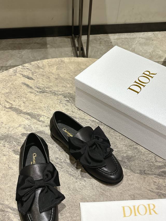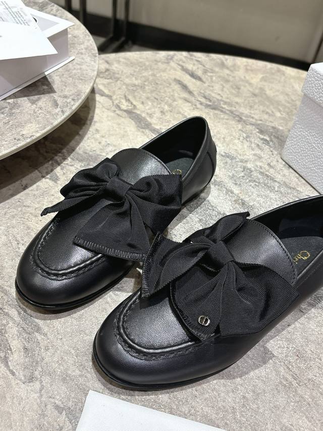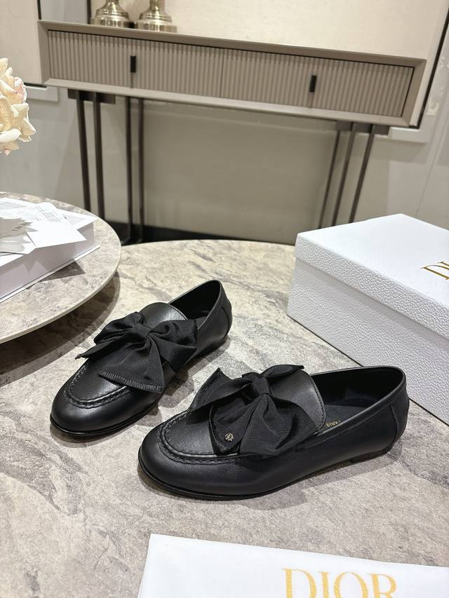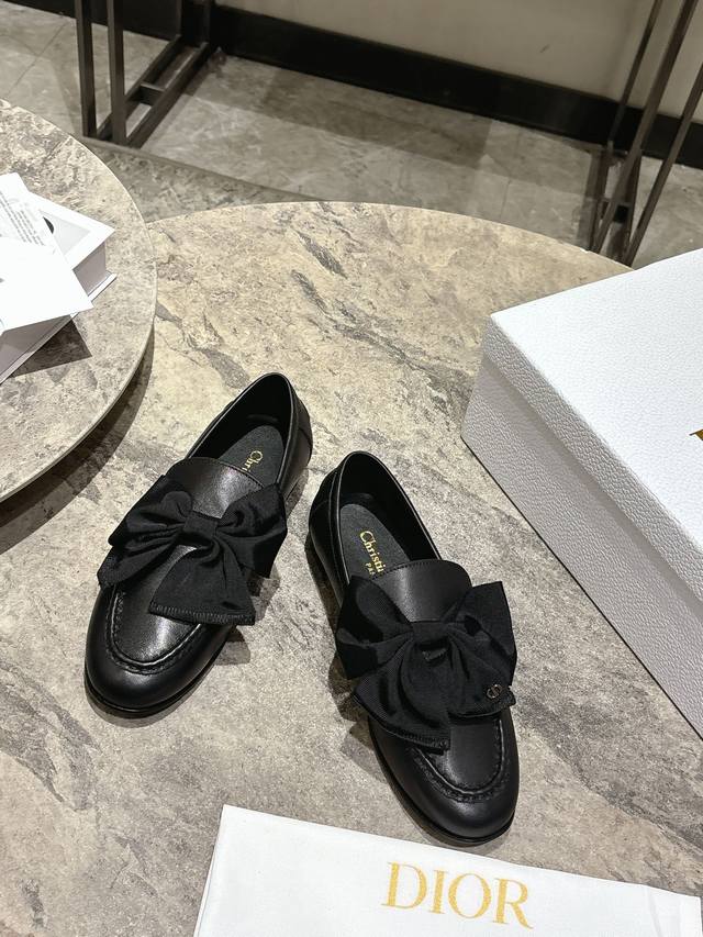 / DDD Dior迪奥 2026春夏新品 专柜最新爆款一脚蹬蝴蝶结乐福鞋系列 DDD 原版购入开发做货这款迪奥乐福鞋采用黑色光面牛皮革精心制作,正面字母标牌饰以金