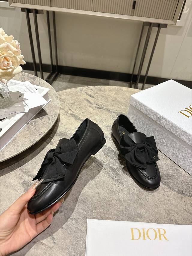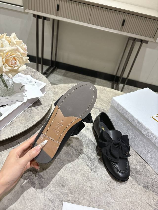 FFF DDD Dior迪奥 2026春夏新品 专柜最新爆款一脚蹬蝴蝶结乐福鞋系列 DDD 原版购入开发做货这款迪奥乐福鞋采用黑色光面牛皮革精心制作,正面字母标牌饰以金色调Christian Dior Paris标志。搭配真皮注塑大底可为各式休闲造型增添经典风格。 DDD 鞋面:原版牛皮 牛漆皮 DDD 内里:羊皮 DDD 大底:进口注塑真皮大底 DDD 跟高:1Cm DDD 码数:35-39 40.41定制 DDD