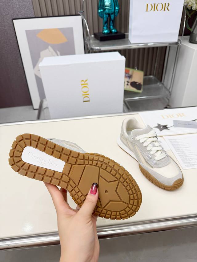 2025最新升级版Dio R 采用牛皮精心制作 饰以 Oblique 印花 搭配饰以 Dior 标志的鞋舌 侧面Logo 霸气十足 橡胶耐磨原版大底 休闲造型增