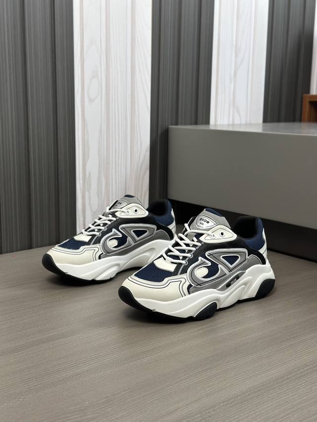 Dior迪奥 实价: Size:39-44 38.45.46定做 Dior 迪奥男士慢跑时尚运动鞋 这款单品从复古慢跑鞋汲取灵感。采用厚实的低帮设计,精选牛皮与