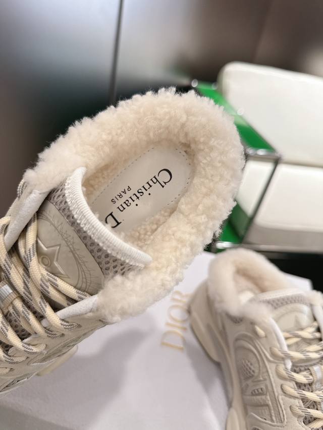 / Dior 迪奥半拖运动鞋 以的高订风格重新演绎跑步鞋。网眼织物搭配白色和天蓝色皮革效果镶片,两侧的标志、鞋舌上的星星补丁和后侧的标志,诸多经典细节彰显格调。采用