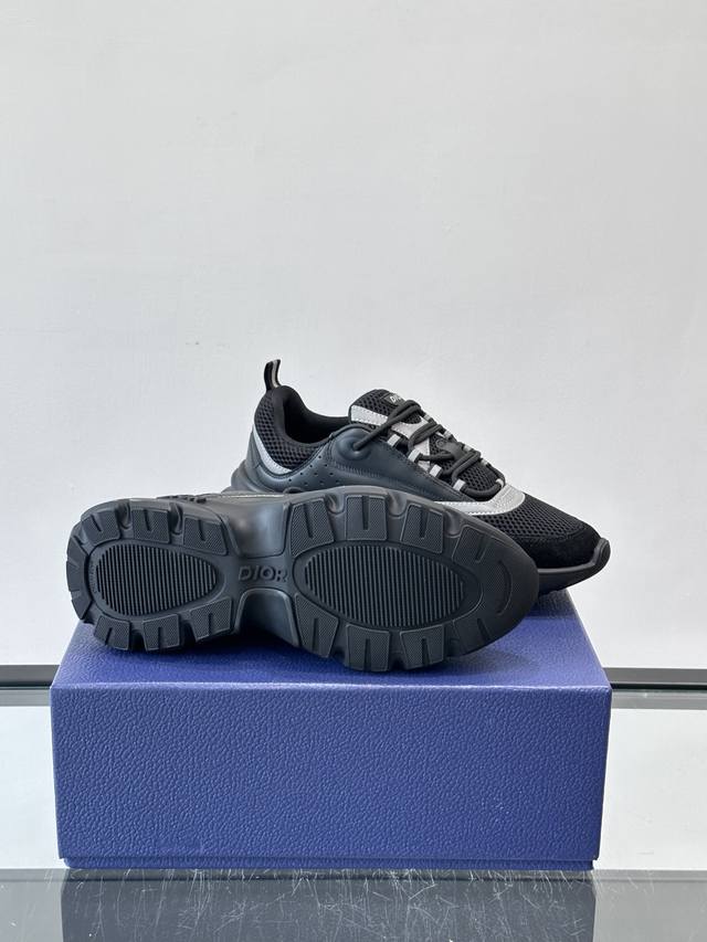 Dior B22复古慢跑鞋,灵感来自经典慢跑鞋,低帮厚底设计,牛皮革+网眼织物拼接,质感满分又透气。 黑白刻花橡胶鞋底,抓地力和舒适度都很棒,日常穿搭或运动都O