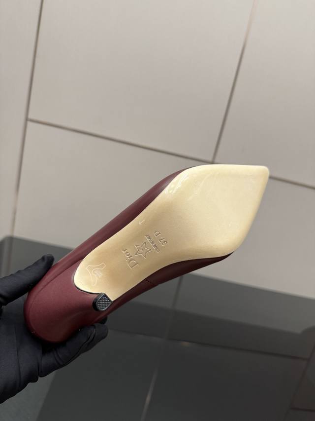 Dior2025 春夏尖头高跟单鞋系列 延续D家永恒经典!这款鞋低调不失华丽 性感又不显张扬 鞋型是大家都爱的秀气款 非常非常显瘦 侧面整个弧度将脚部曲线完美展现 既有成熟女人味 又不乏一丝活泼少女感, 上脚也太好看了,值得推荐 Go 材质: 鞋面:羊京,牛皮 内里:混种羊皮 大底:意大利进口牛皮大底 跟高:8.5Cm 码数:34–41 34 40 41定制不退换