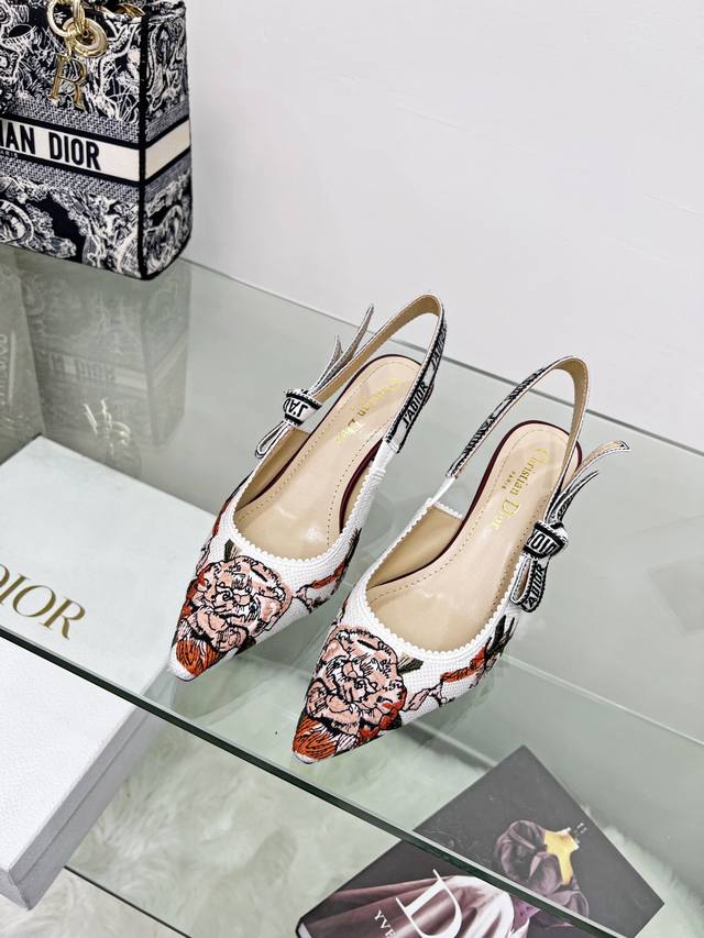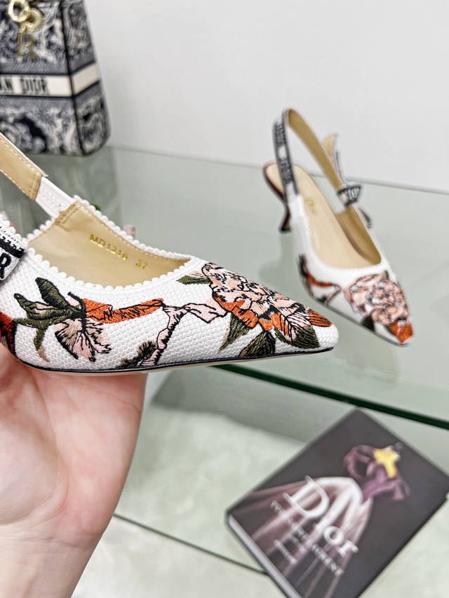 J'adior织带后空凉鞋 迪奥 Dior 春夏最新色 Jardin D’Hiver 提花刺绣字母Logo高跟蝴蝶结拼色女鞋 市场顶级高端版本 DDD 材质:高温水溶电绣科技面料+羊皮内里+意大利真皮大底 DDD 码数:标准码33-44 平底34-44 中跟6.5Cm 高跟9.5Cm;33-44 33.34.40.41.42.43.44订做,不退不换 DDD
