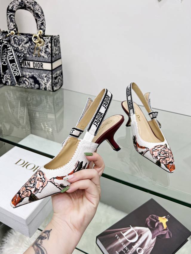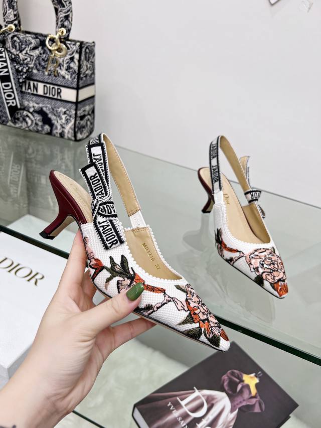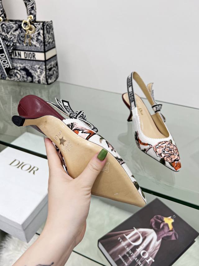J'adior织带后空凉鞋 迪奥 Dior 春夏最新色 Jardin D’Hiver 提花刺绣字母Logo高跟蝴蝶结拼色女鞋 市场顶级高端版本 材质:高温水溶电