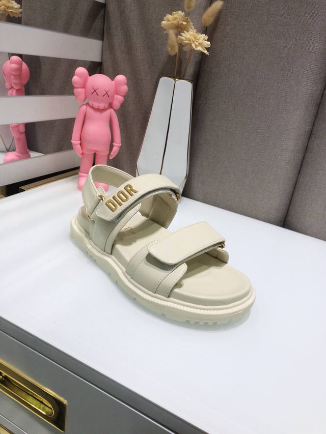 迪奥 Dior 春夏走秀新款 Ract 磨术贴厚底休闲女鞋 Cd字母Logo五金扣露趾凉鞋 明星同款平底圆头复古沙滩鞋 市场顶级版本