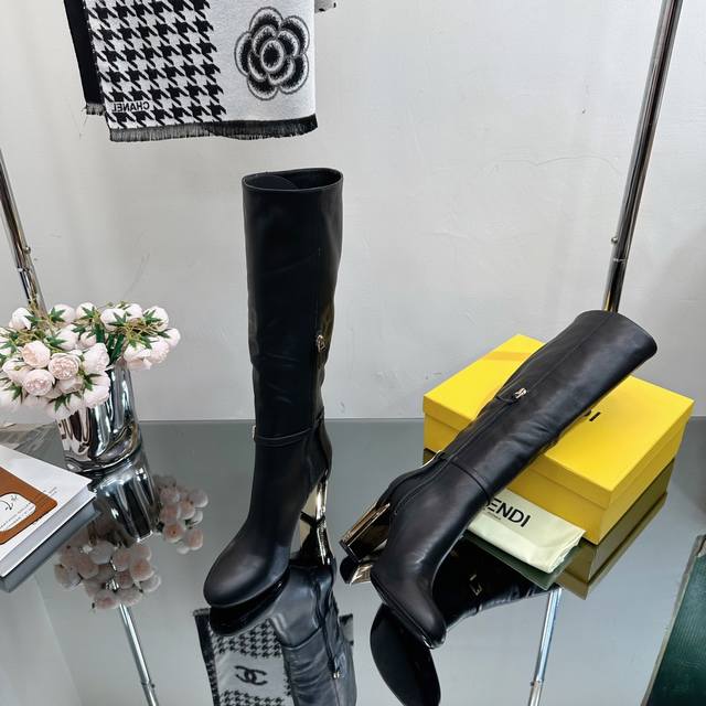 / 专柜走秀新款Fendi 镂空粗跟长靴2种面料 超火 独家开模的镂空跟设计极具特色 Fendi家从来没有让我们失望过,性感又带点特色 皮面 布面 ★原版牛皮 内里