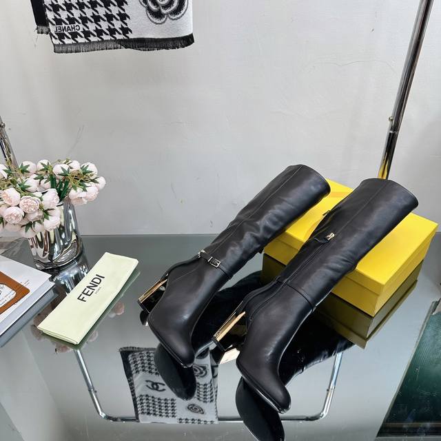 专柜走秀新款Fendi 镂空粗跟长靴2种面料 超火 独家开模的镂空跟设计极具特色 Fendi家从来没有让我们失望过,性感又带点特色 皮面 布面 ★原版牛皮 内里