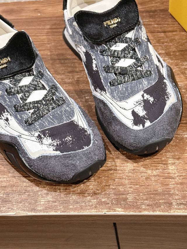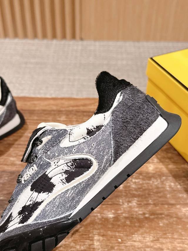 FFF 代购级 芬迪新款复古风平底运动休闲鞋 DDD 鞋面是牛反绒+皮革拼接,自带做旧纹理,质感高级还显独特;鞋舌有Fendi标识,细节处藏着品牌辨识度。圆头+魔术贴搭扣,穿脱方便且适配不同脚型; DDD 鞋型偏宽松,对脚宽 脚胖包容度高,同时视觉显脚小;配色是低饱和复古色系,自带松弛的“老钱风”调性。鞋底是轻质橡胶底,软弹不累脚,日常通勤或者逛街都适配;风格兼容复古、休闲、轻熟风,搭牛仔裤、西装裤、连衣裙都不违和。 DDD 鞋面:牛皮 DDD 内里:羊皮 DDD 大底:原版开模大底 DDD 增高:3Cm