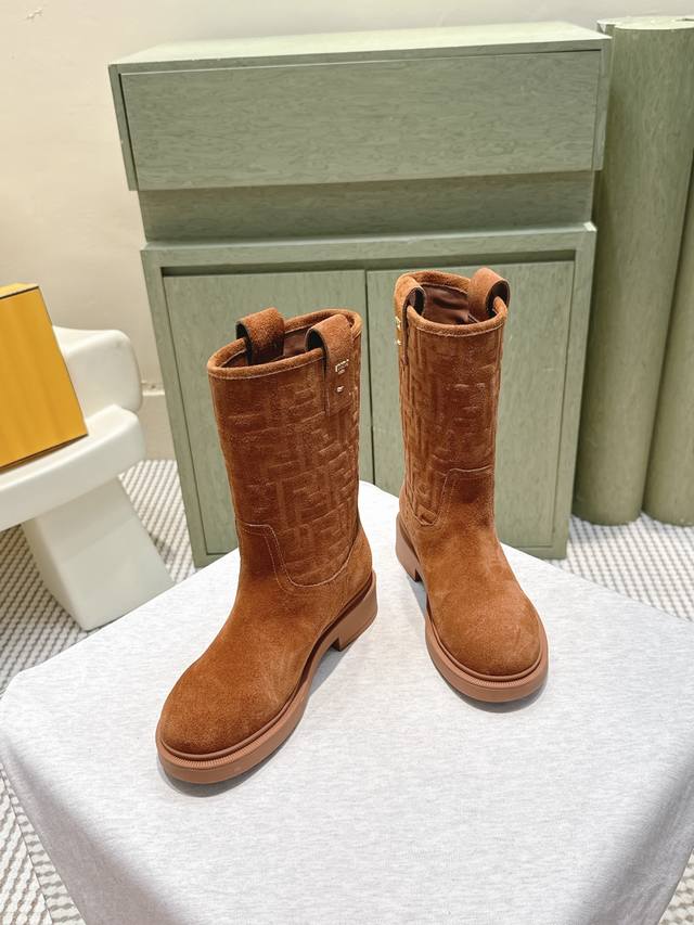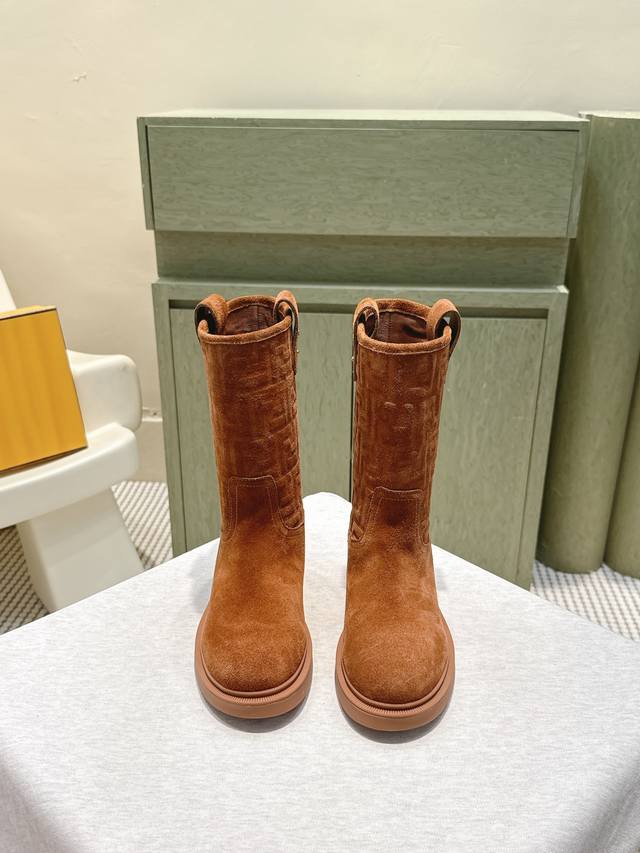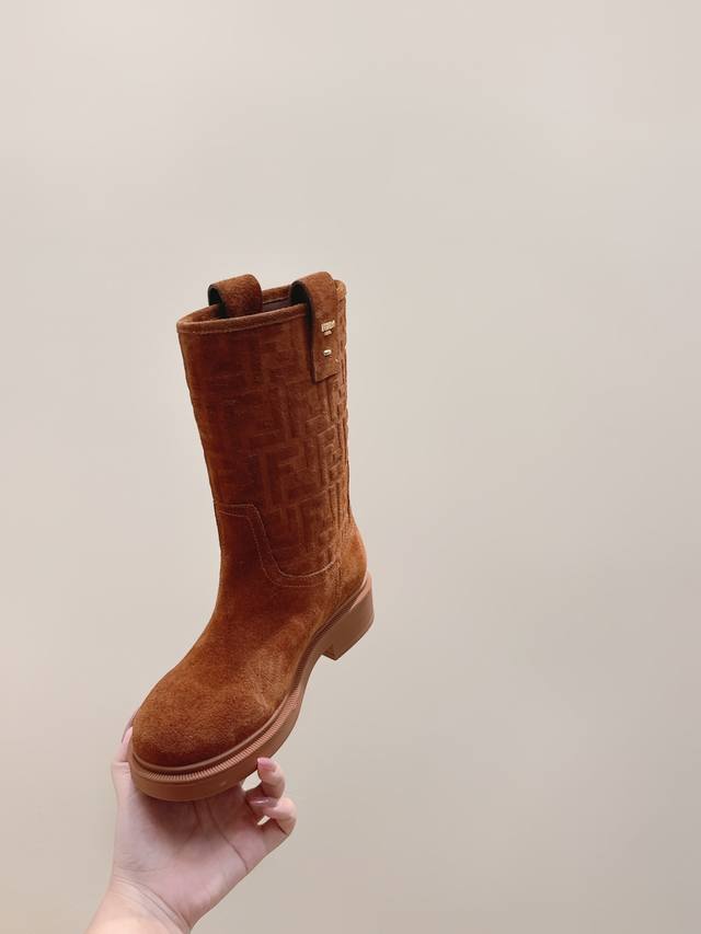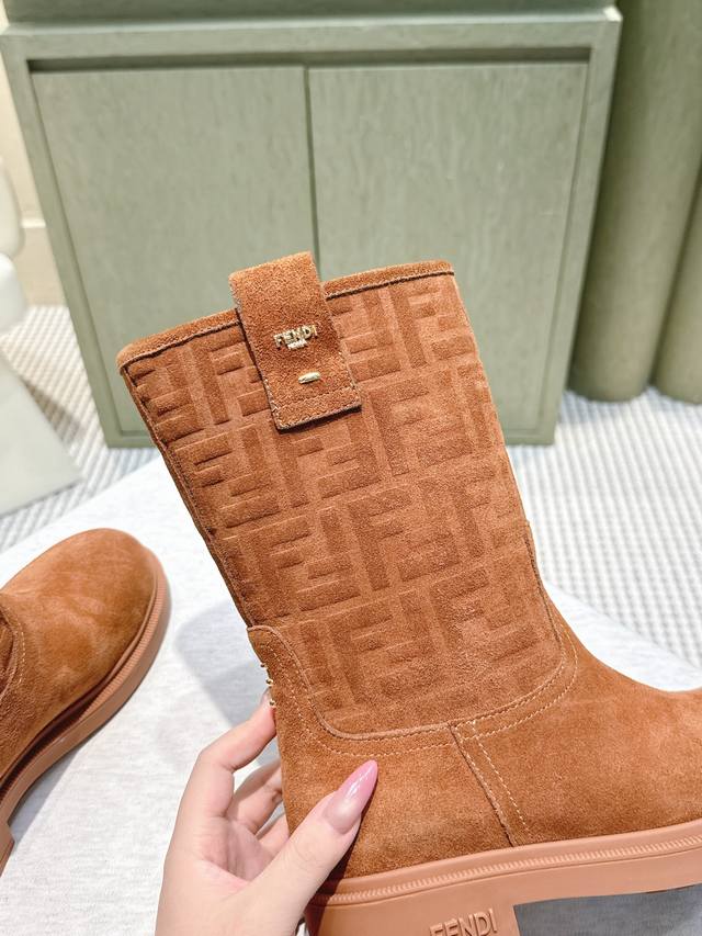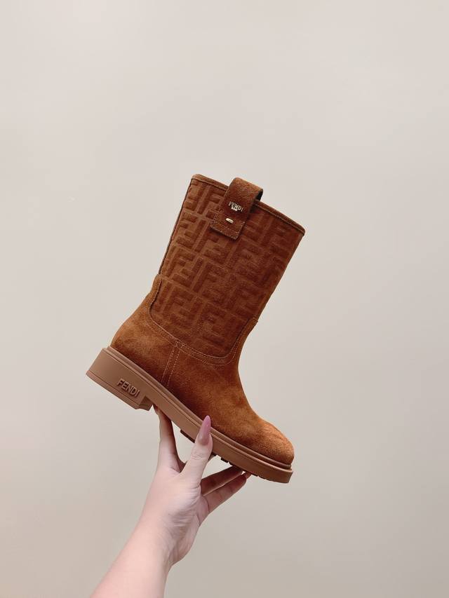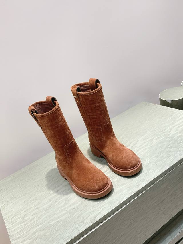 / 代购级 Fendi芬迪 25新秋冬短靴 高筒靴 骑士靴 Fd又出美靴啦 高级反绒牛皮面料,经典Ff老花高级特殊压印 开模原版分体五金 机车造型时尚前卫,上脚非常