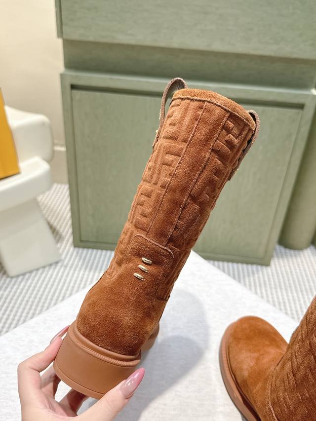 代购级 Fendi芬迪 25新秋冬短靴 高筒靴 骑士靴 Fd又出美靴啦 高级反绒牛皮面料,经典Ff老花高级特殊压印 开模原版分体五金 机车造型时尚前卫,上脚非常