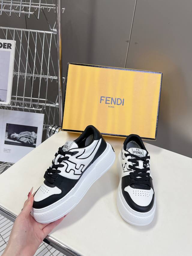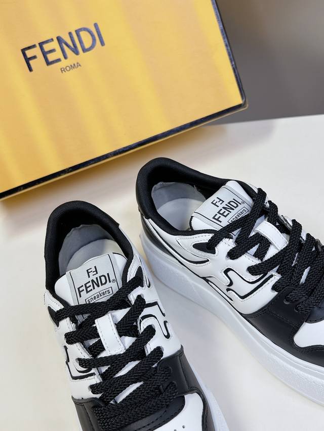 Fendi芬迪 2025最新版面 滑板鞋休闲运动鞋 Fd Match 升级新款 情侣款全皮面拼接 新鲜血液注入加Ff复古的设计 超好看百搭...