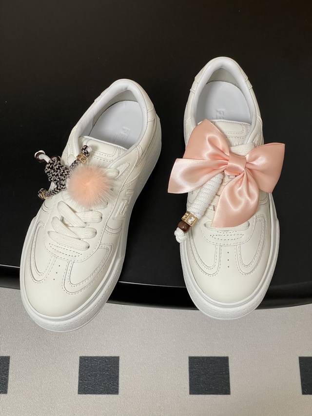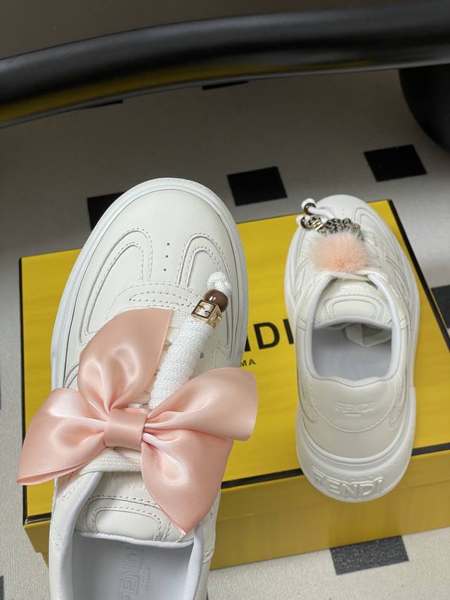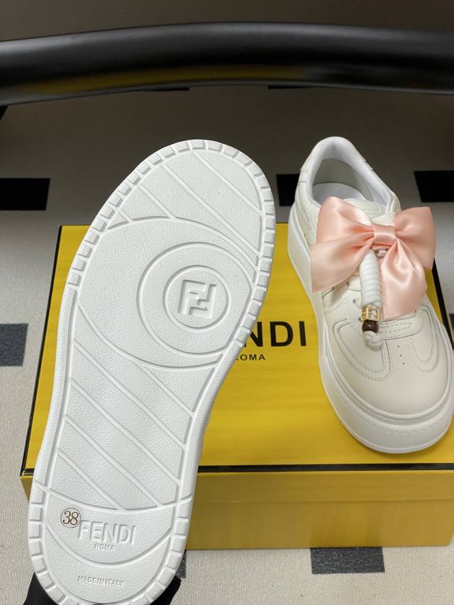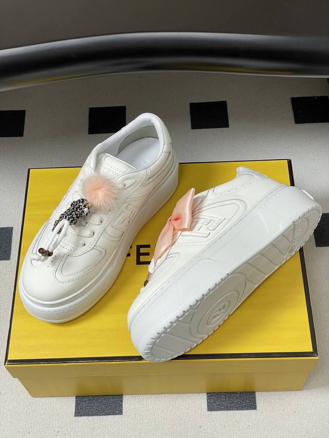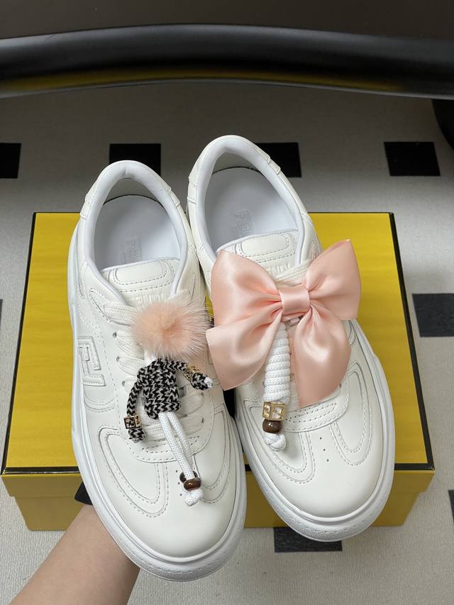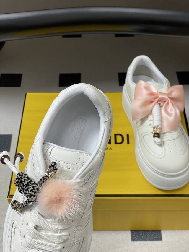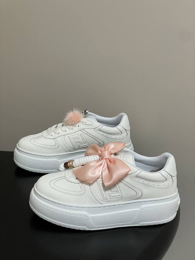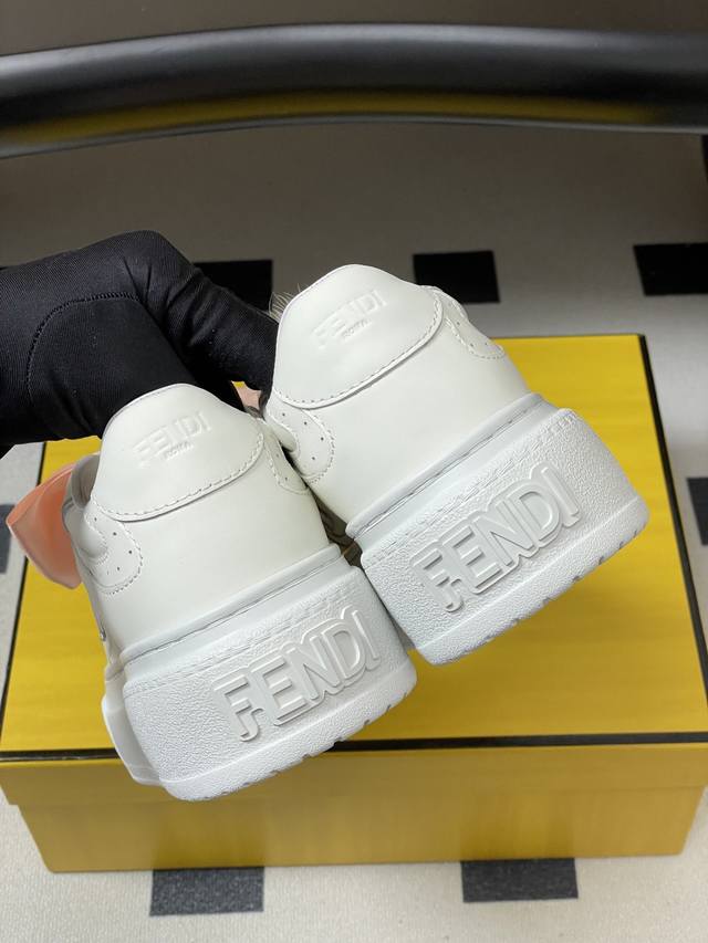 全日 -顶级品质 Fendi芬迪 Match系列 25最新配色 吊饰厚底板鞋系带休闲运动鞋 Fendi Match系带运动鞋。浅粉色皮革材质,带白色和赭石棕细节