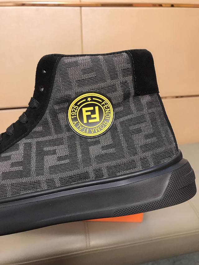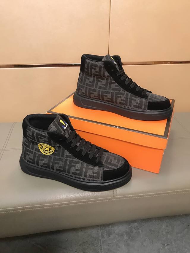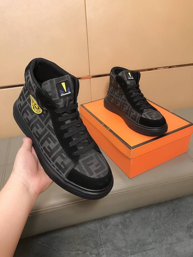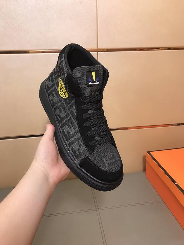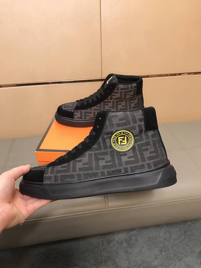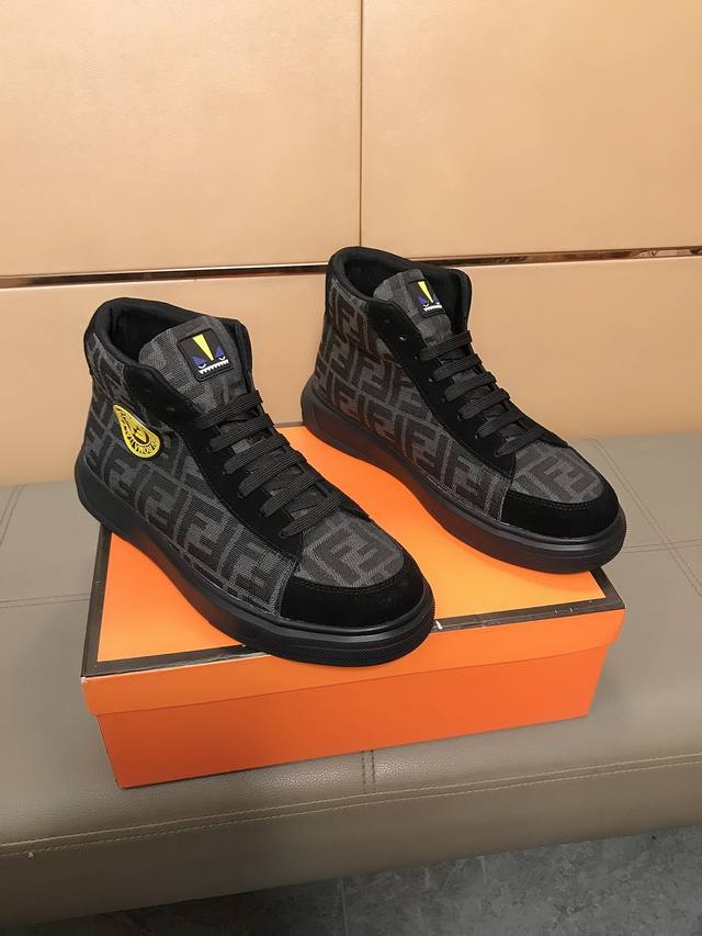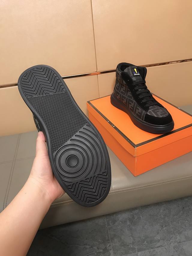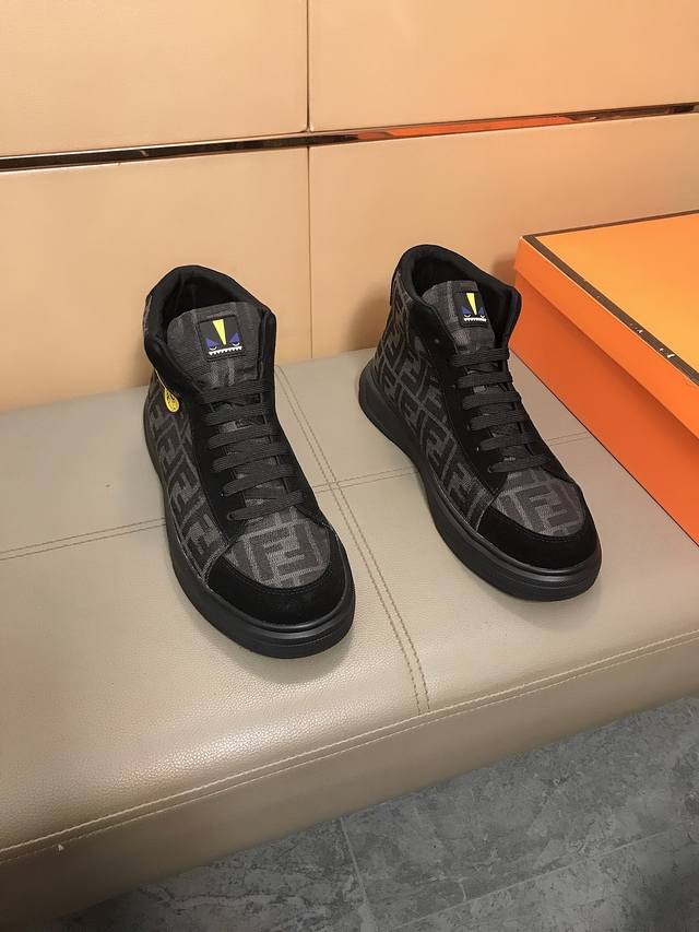 出厂价p Fendi 芬迪 经典舒适男士高帮休闲鞋,鞋面选用磨砂皮搭配品牌印花面料,羊皮垫脚,橡胶耐磨大底 这种独特的风格适合四季,随意而精致的感性,上脚舒适自然 秋冬休闲出行日常款!码数:38-44 DDD
