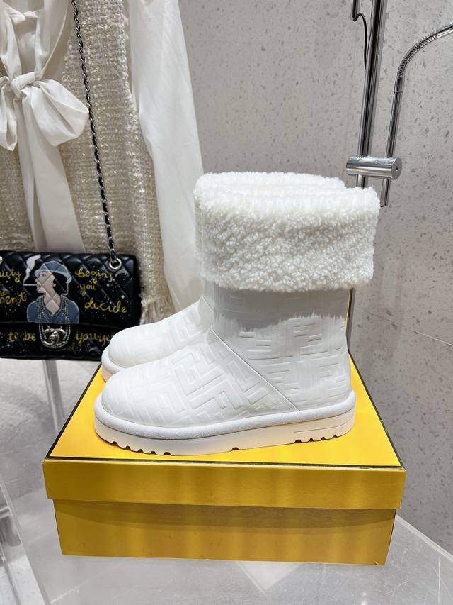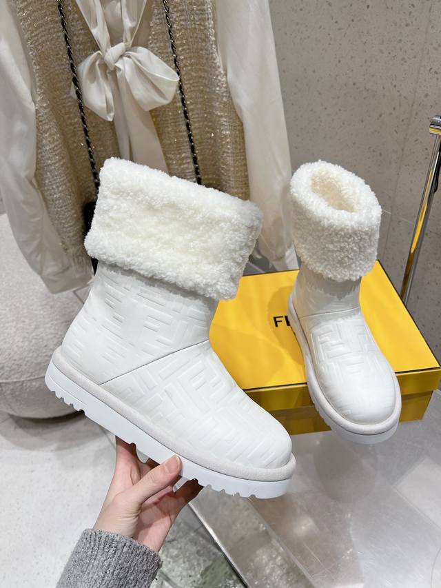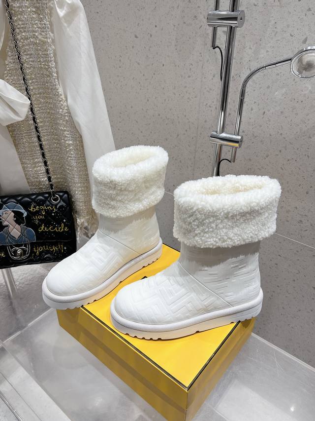 / 出厂:绒面 皮面 Fendi 芬迪 F家秋冬新款羊毛雪地靴 纯皮毛一体羊毛材质!萌萌哒~暖暖哒~ 鞋底高密度发泡材质轻软弹性,脚感无比轻盈, 靴身双F经典压花