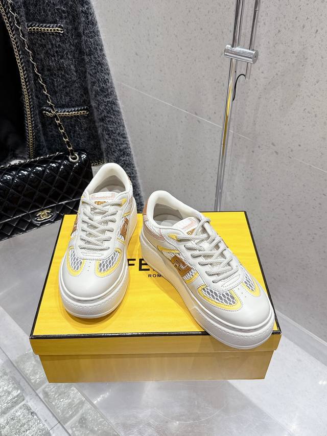 Fendi芬迪 2025最新版面 滑板鞋 厚底休闲运动鞋 升级新款 情侣款全皮面拼接 新鲜血液注入加Ff复古的设计 超好看百搭...