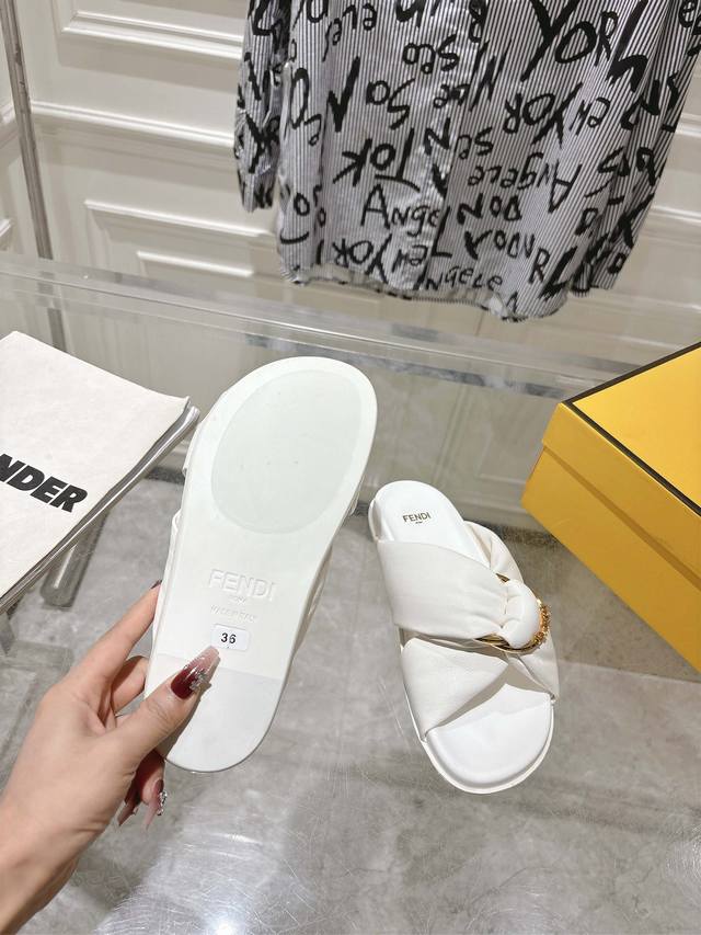 出 Fendi芬迪2025平底沙滩休闲拖鞋 整双鞋子采购Zp开发打造,全部定制材料,独家开模大底,细节全部对版出货,连包装也做到跟正品一样。码数35-40