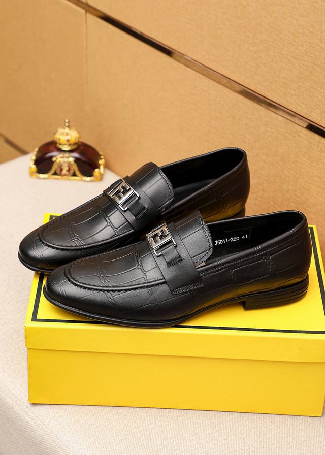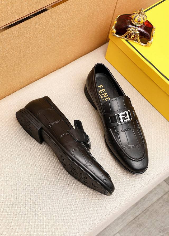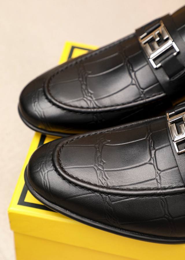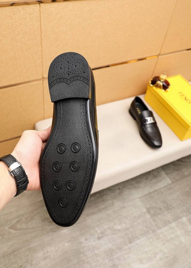 商品商标:Fendi 芬迪 休闲皮鞋 DDD 正码码数: 39-44 38.45订制 DDD 商品材料:精选 进口头层小牛皮压花鞋面+奢华五金扣,进口牛皮内里。强烈立体视觉效果,原版大底 DDD 颜 色:1色可选 DDD